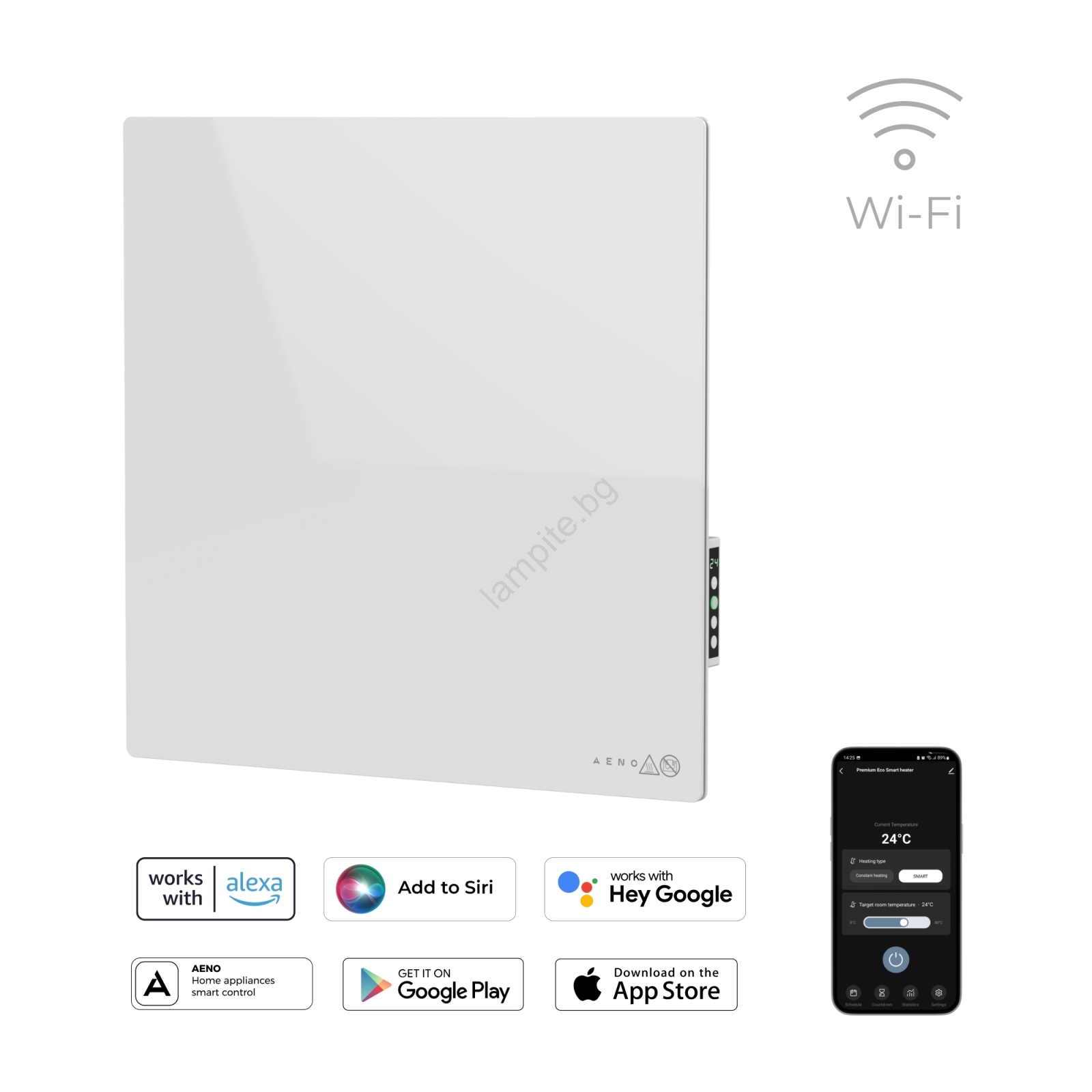 AENO - Умен електрически инфрачервен панел 500W с таймер/термостат, Wi-Fi, бял
