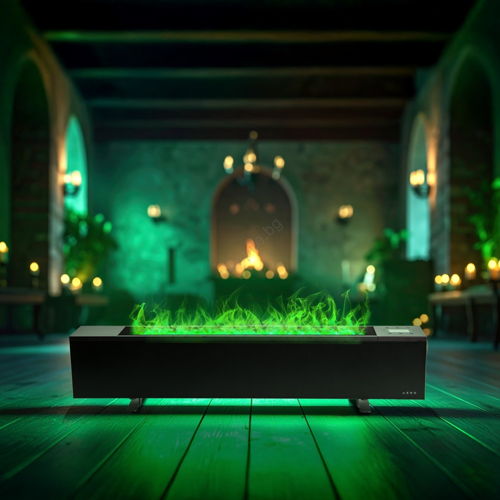 • Има декоративен ефект „пламък“ благодарение на LED осветление и разпръскване на пара, който създава атмосфера, подобна на истински огън, но без пламък и дим.