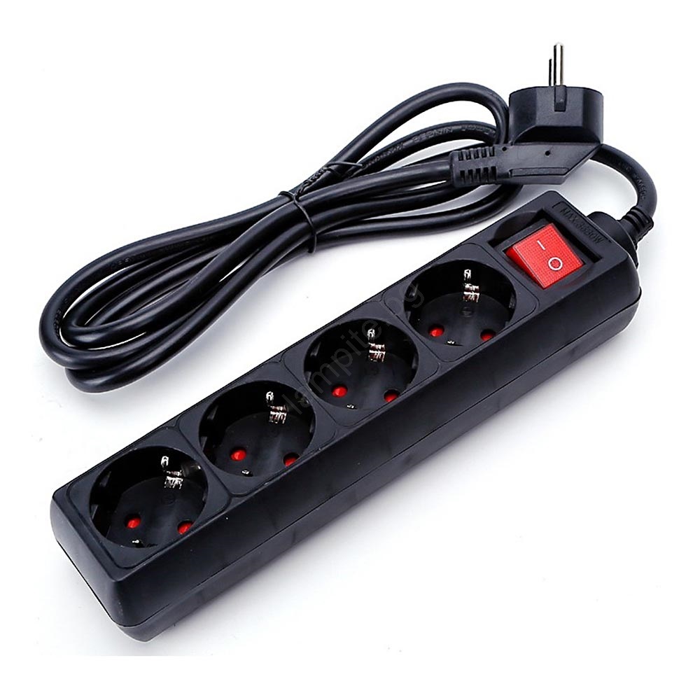 Aigostar - Удължител с ключ 4 гнезда 1,5 м SCHUKO черен