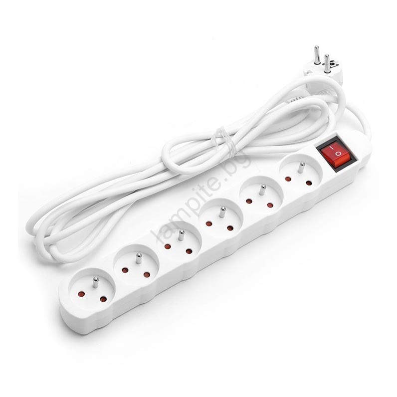 Aigostar - Удължител с ключ 6 гнезда 5м бял