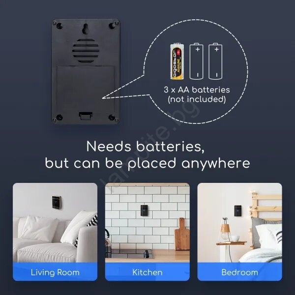• Захранване на звънеца: 3x AA (батерии не са включени в комплекта).