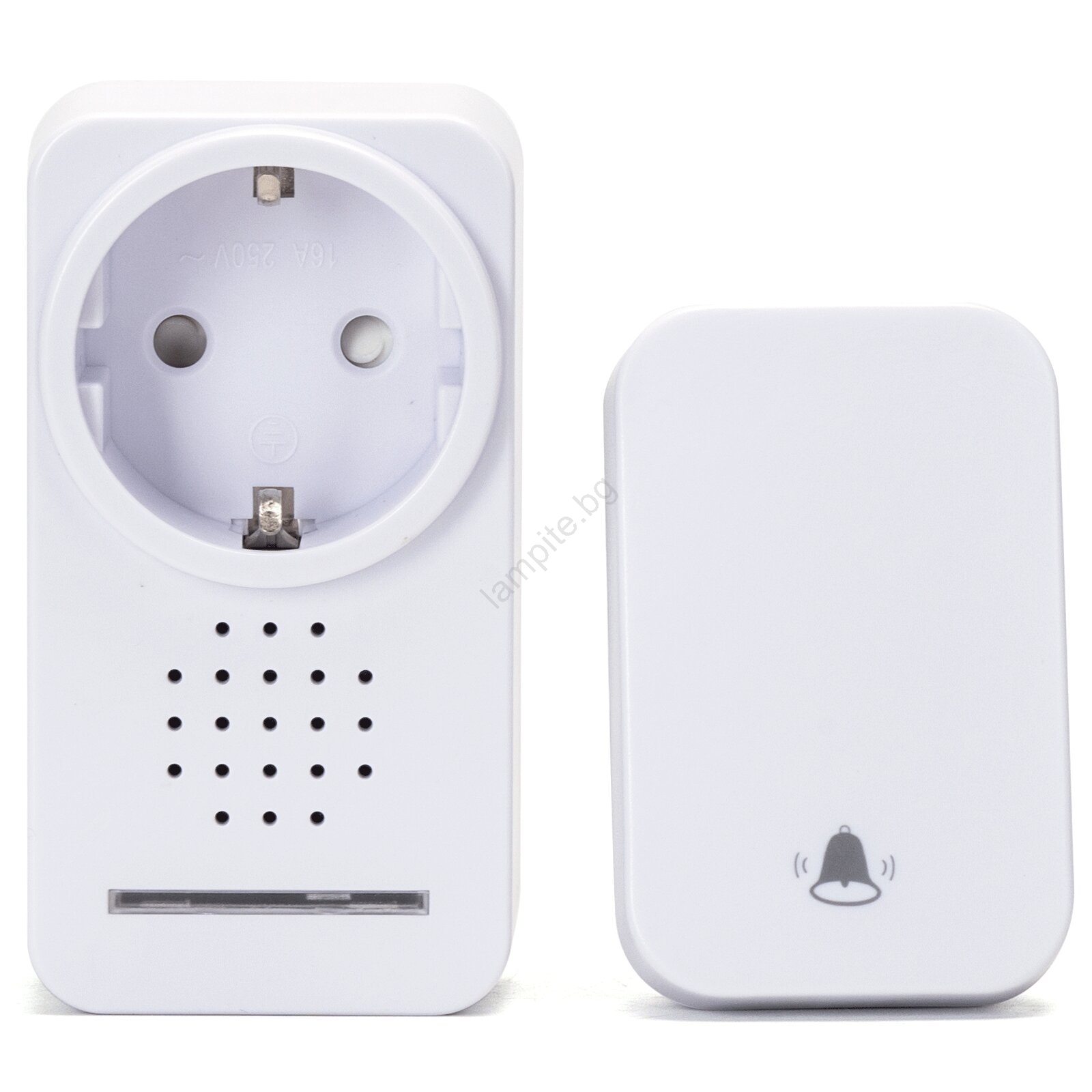 Aigostar - Безжичен звънец за контакт 1Z 230V IPX4 бял