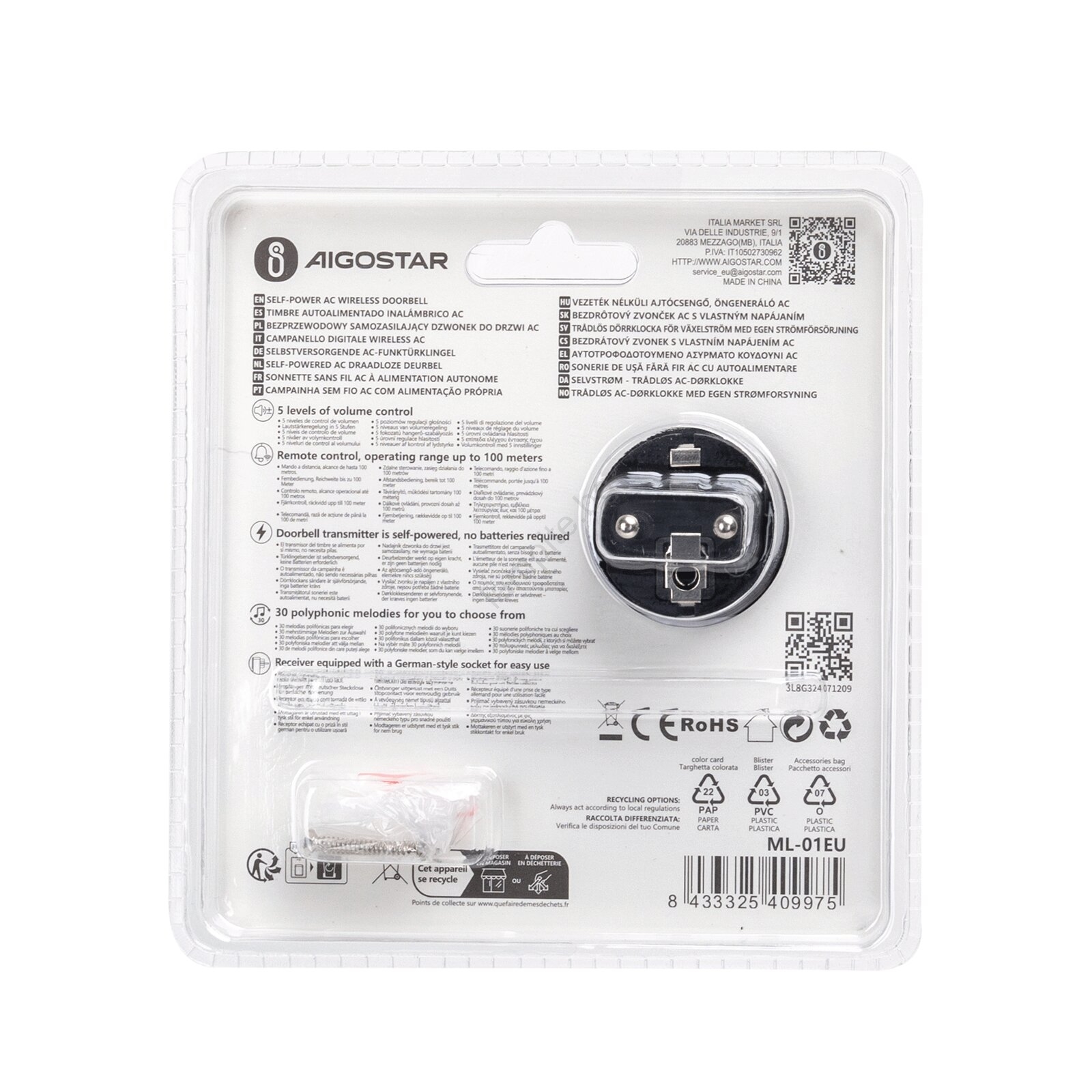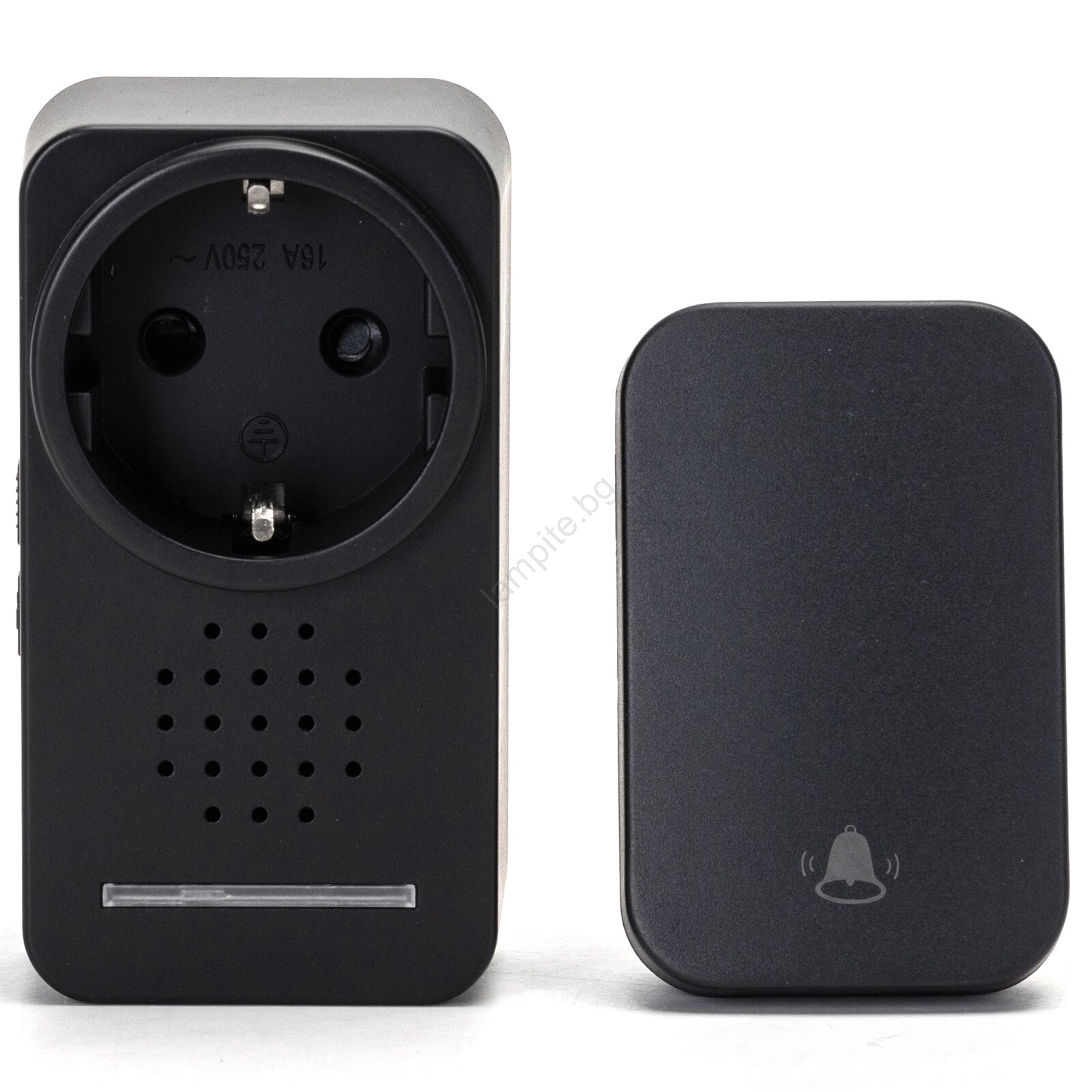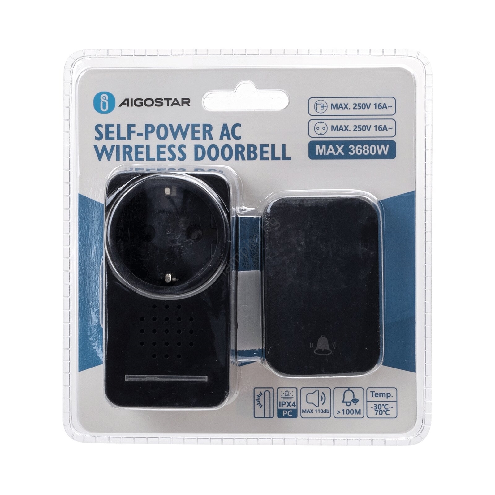 Aigostar - Безжичен звънец за контакт 1Z 230V IPX4 черен
