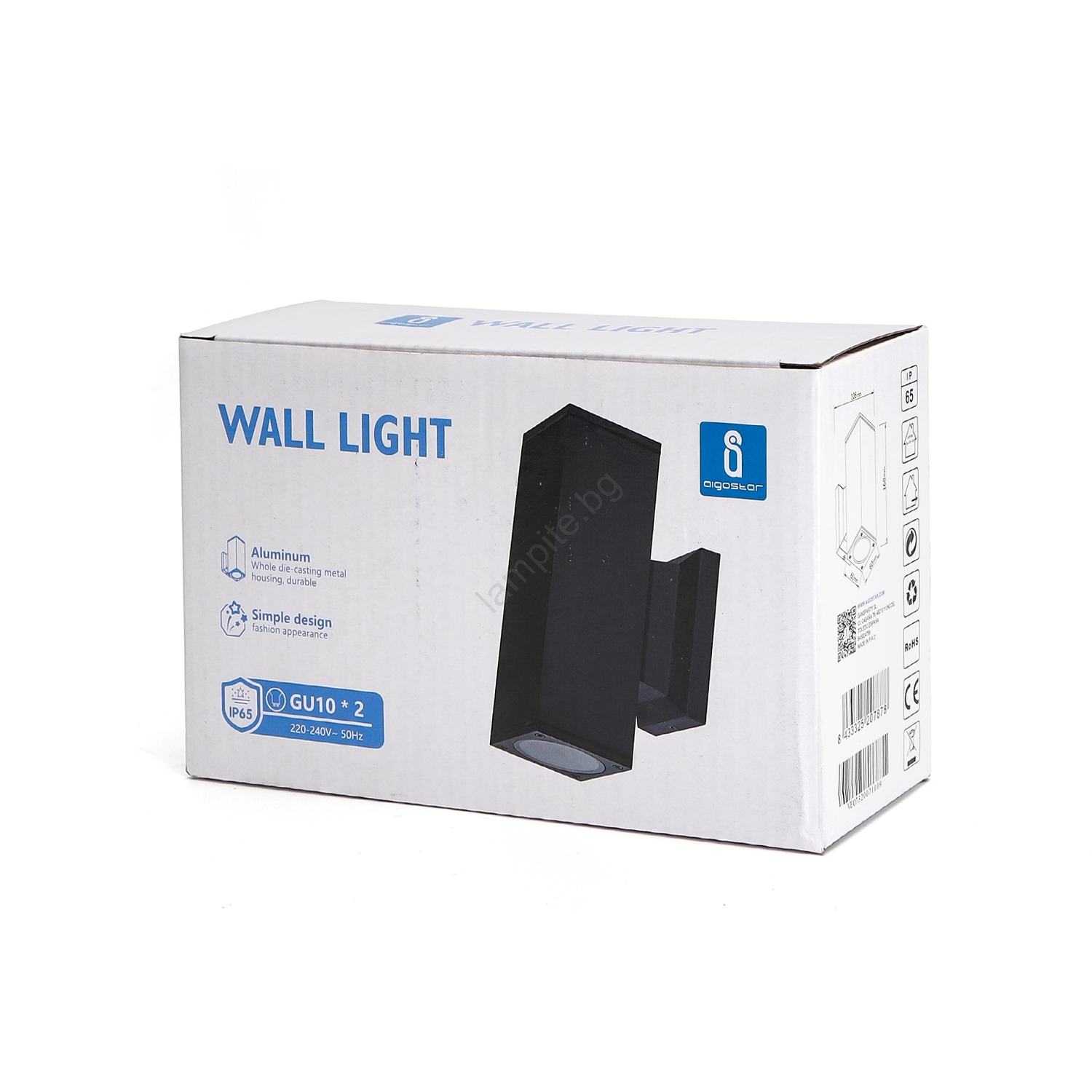Aigostar - Екстериорен аплик 2xGU10/230V черен IP65 ъглов се отличава с приятен и функционален дизайн.  Подходяща е крушка с цокъл GU10. Тук можете да закупите и други крушки на изгодни цени. Ще имате интересно допълнение към дома си.