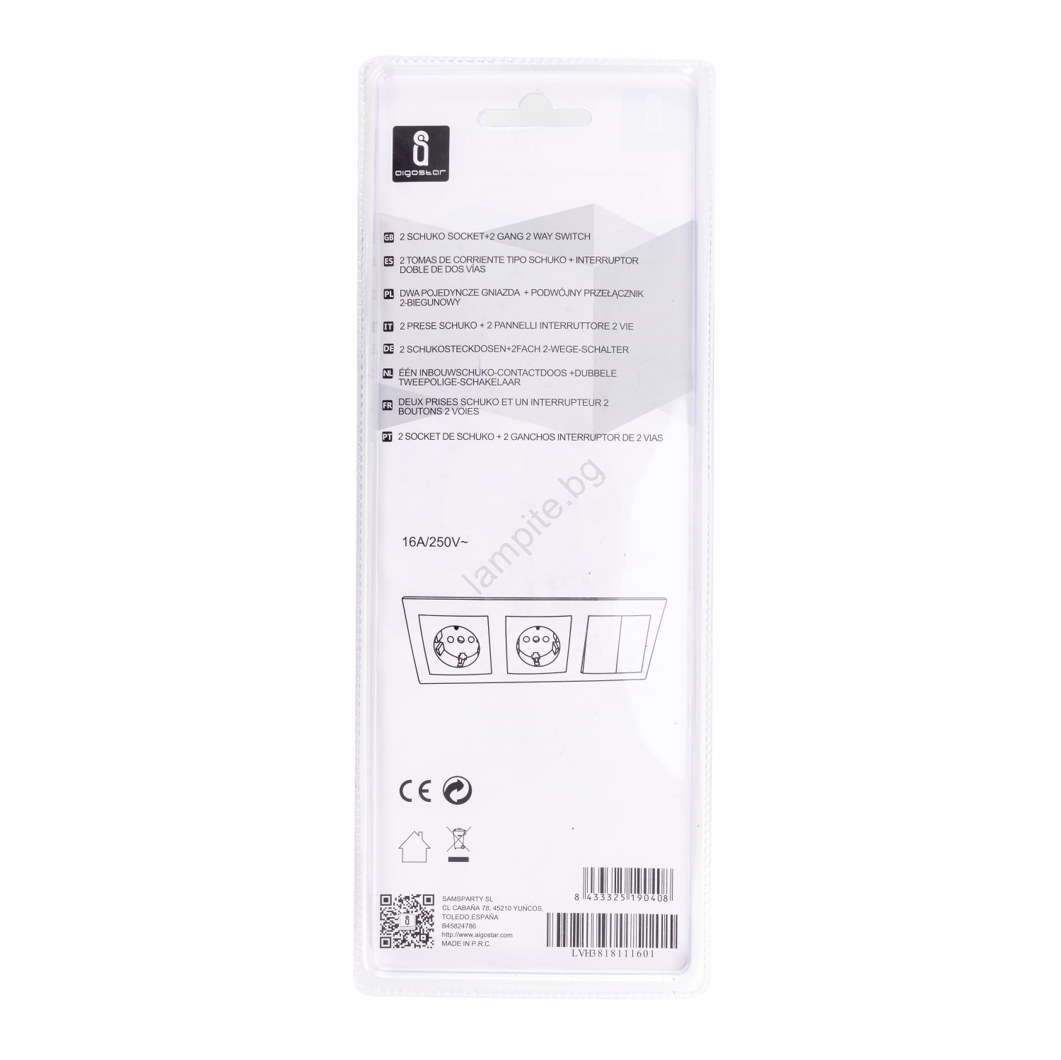 Aigostar - Комплект от 2 броя контакт с ключ 2x16A/250V SCHUKO