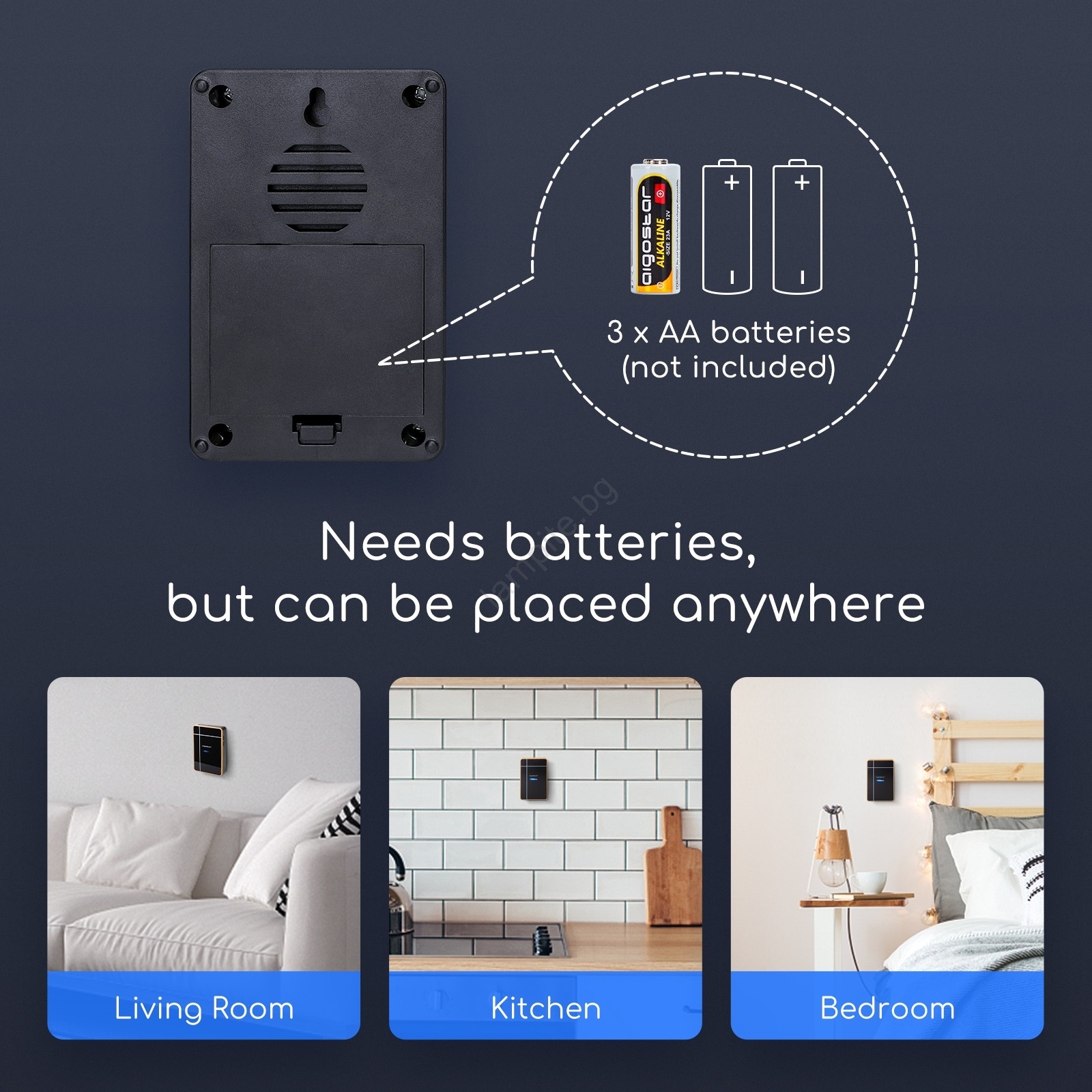 • Захранване на звънеца: 3x AA (батериите не са включени в комплекта).