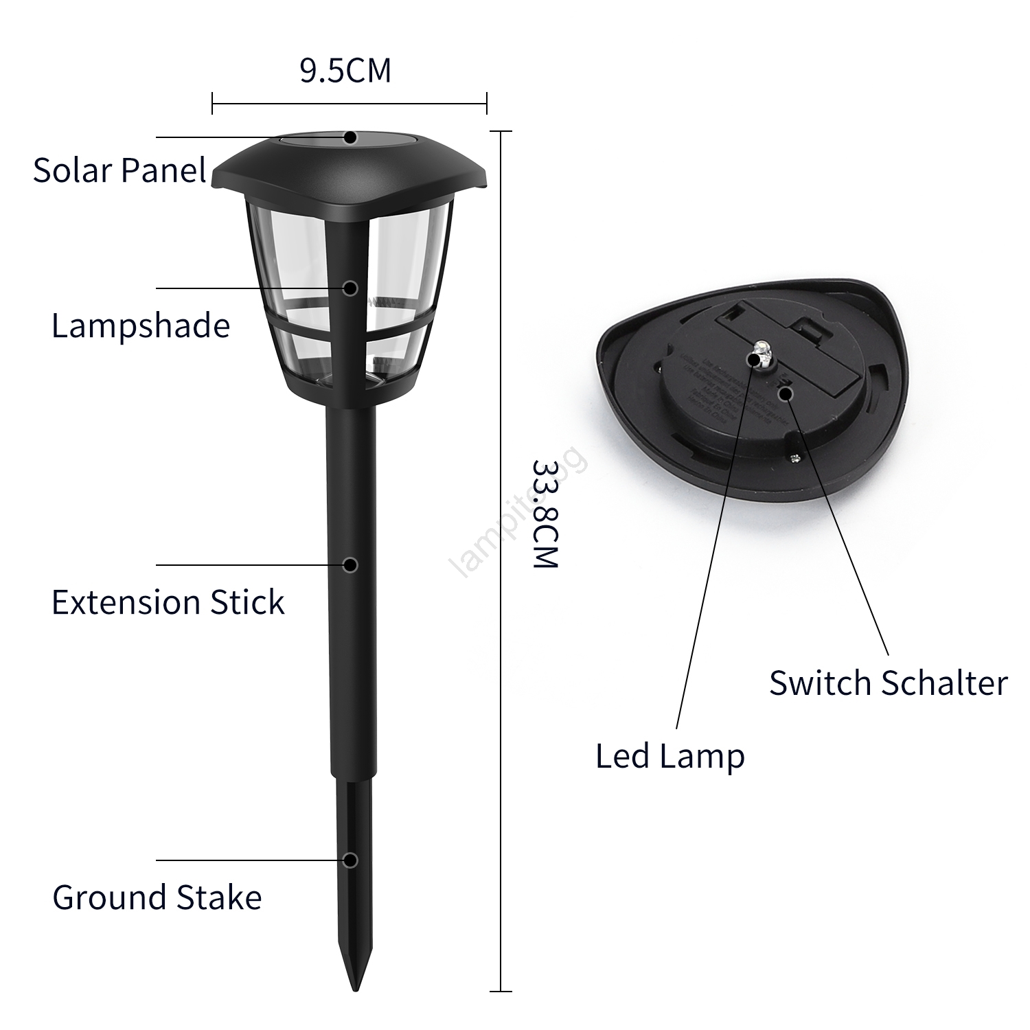 Aigostar - Комплект от 12 соларни LED лампи LED/0,06W/2V 33,8 см 6500K 100 mAh IP44 черни