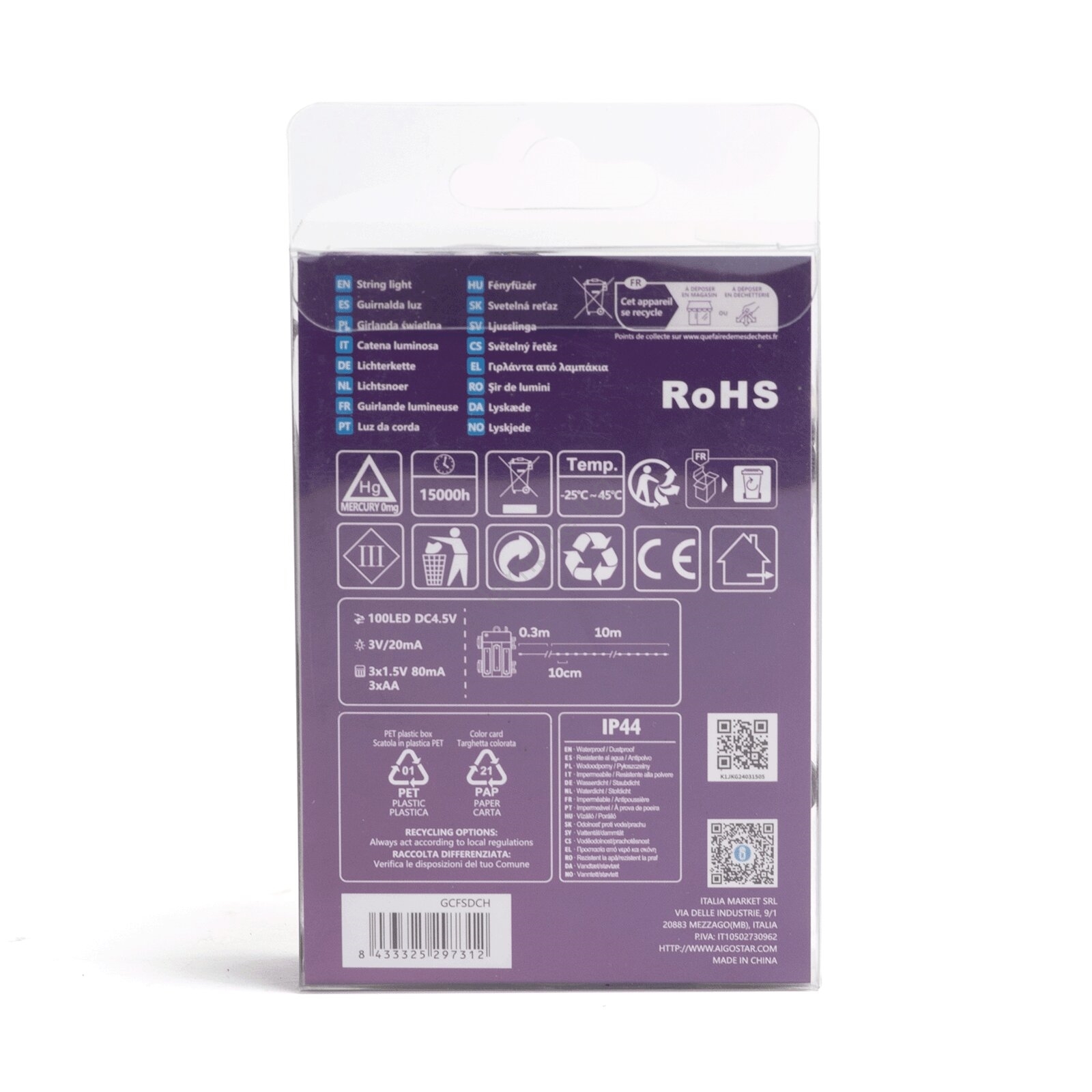 Aigostar - LED Външна коледна верига 100xLED/8 функции 3xAA 10,3м IP44 топла бяла