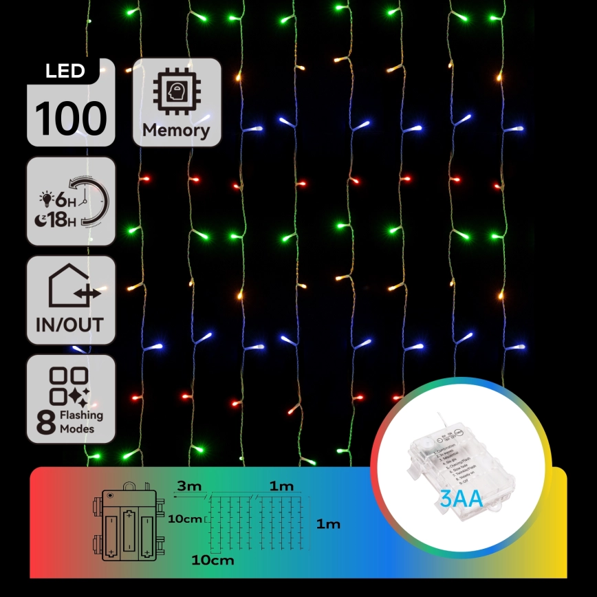 Aigostar - LED Екстериорни Коледни лампички 100xLED/8 функции 3xAA 4x1 м IP44 многоцветен
