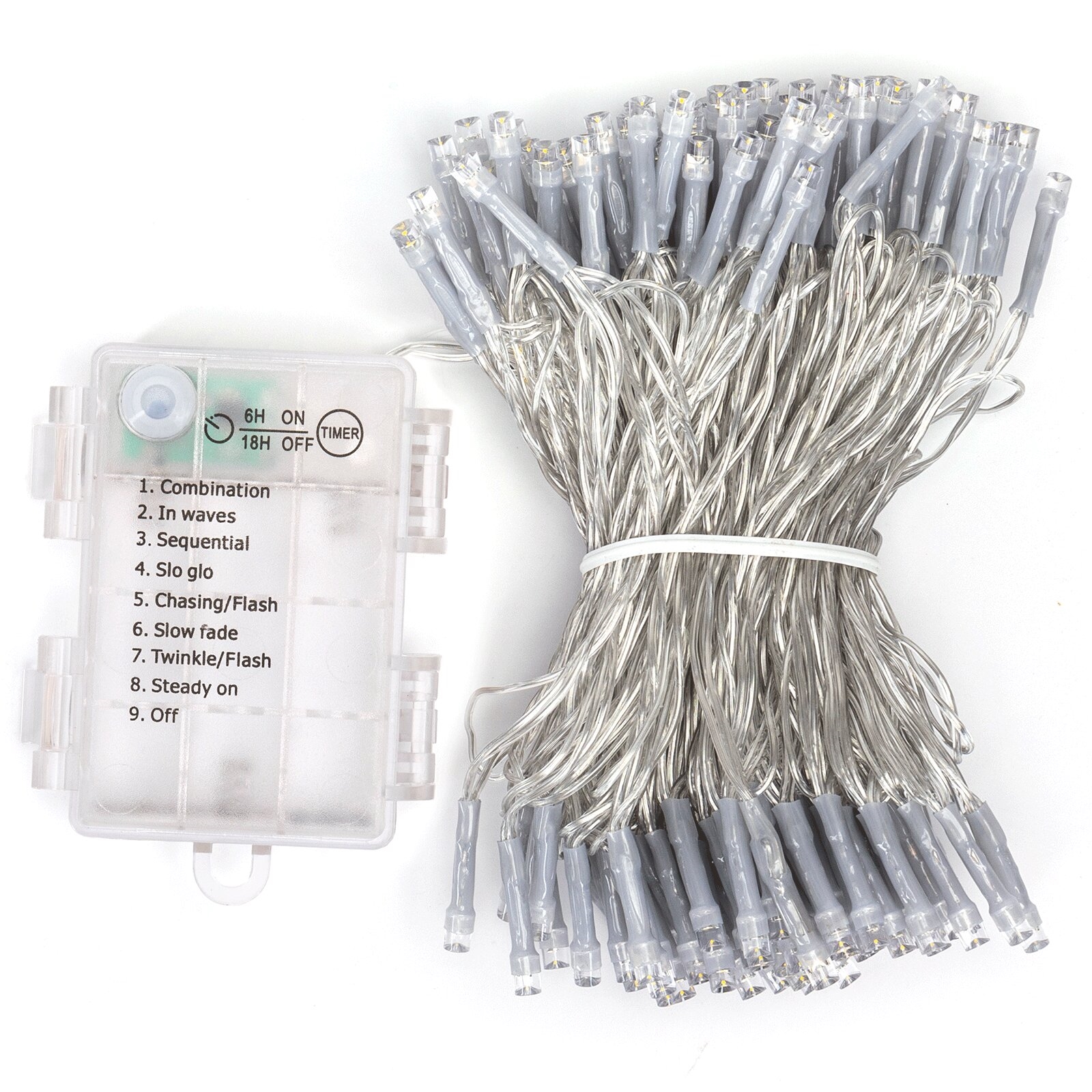 • Aigostar -LED Външен гирлянд 150xLED/8 режима 3xAA 15,3m IP44 топла бяла светлина