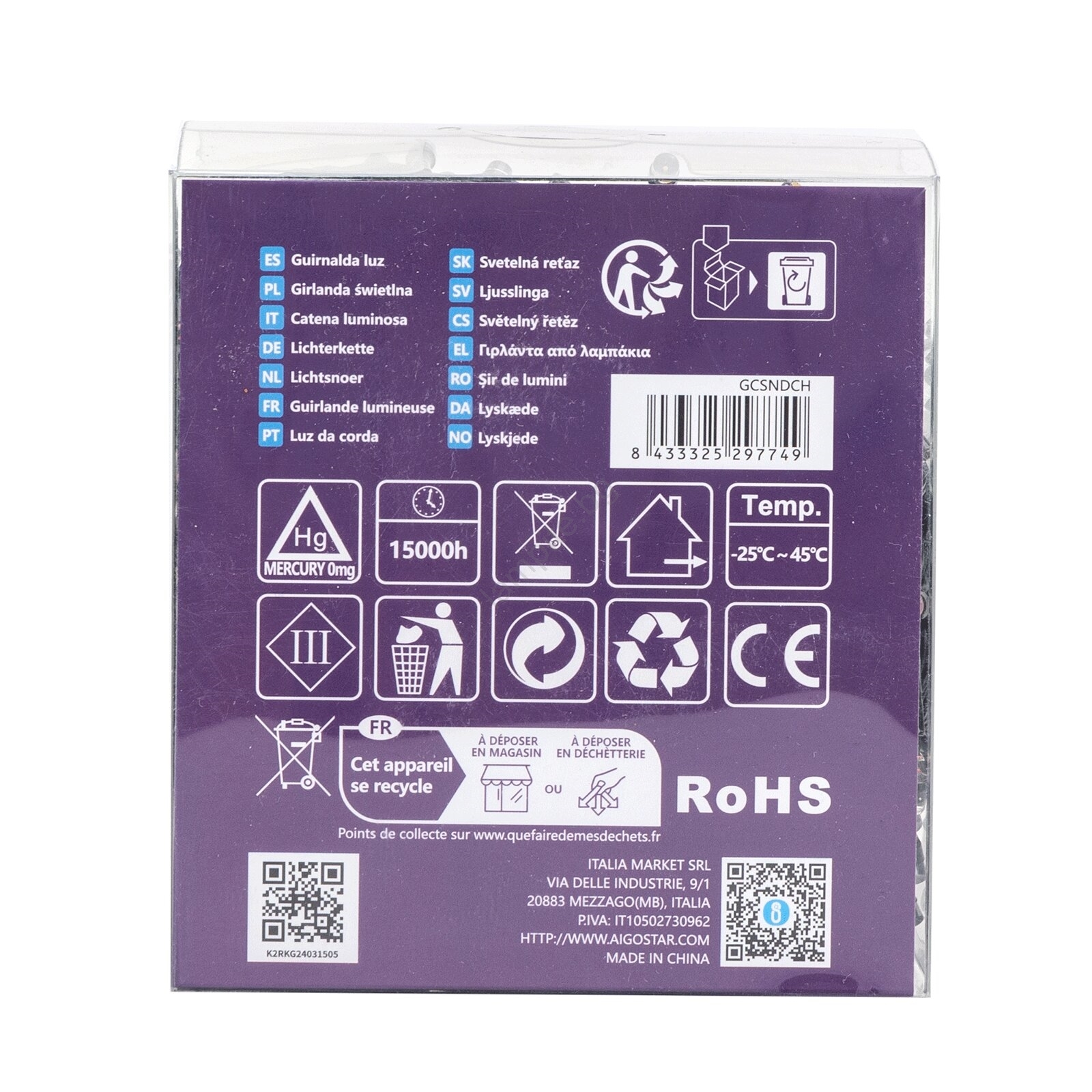 Aigostar -LED Външен гирлянд 300xLED/8 функции 3xAA 15,3m IP44 многоцветен