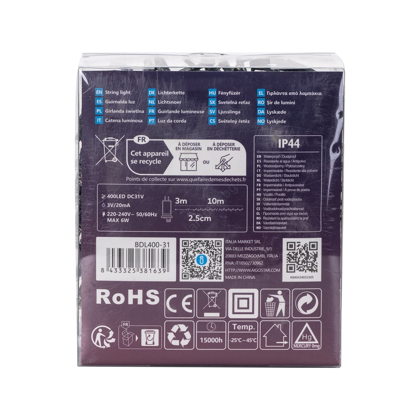 • Aigostar - LED гирлянд за външна употреба, 400 x LED, 8 режима, 13 m, IP44, студено бяло