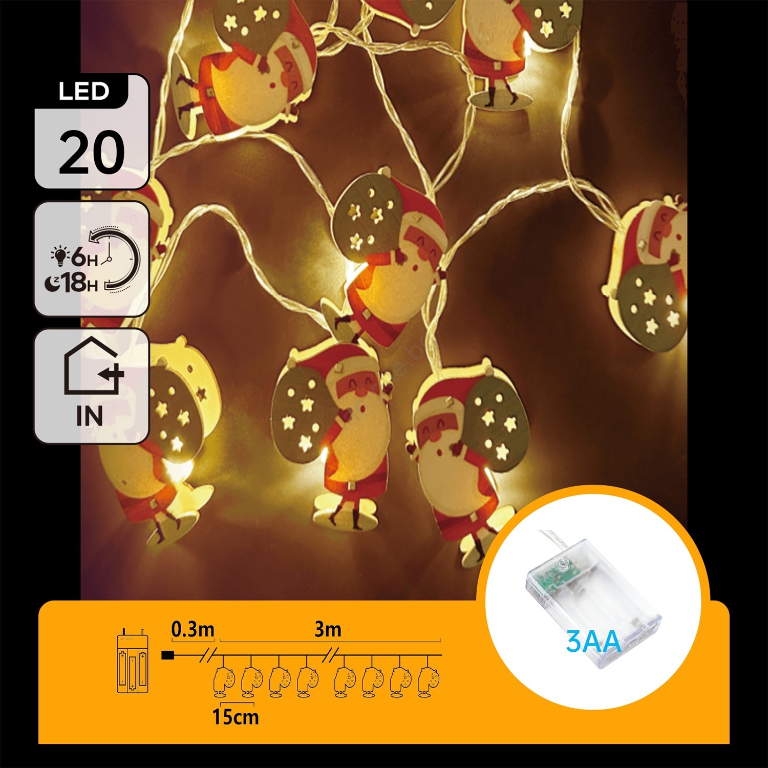 Aigostar - LED гирлянд 20xLED/3xAA 3m, топла бяла светлина, Дядо Коледа