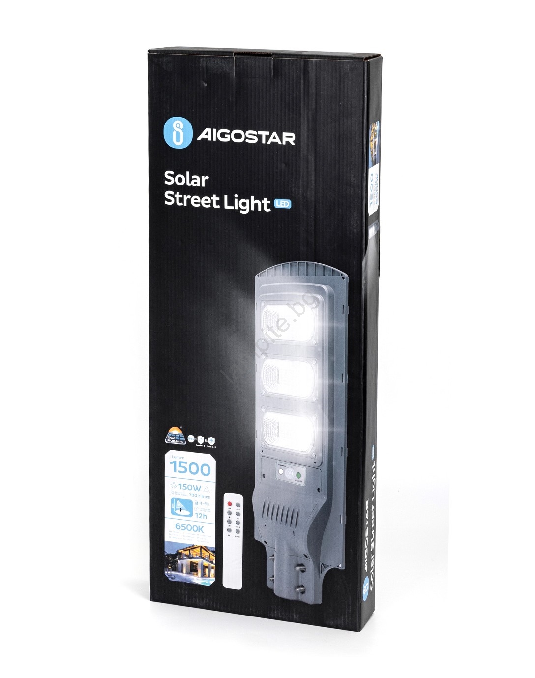 Aigostar - LED Соларна улична лампа със сензор за движение и здрач LED/150W/3,2V 15000mAh IP65 6500K + дистанционно управление