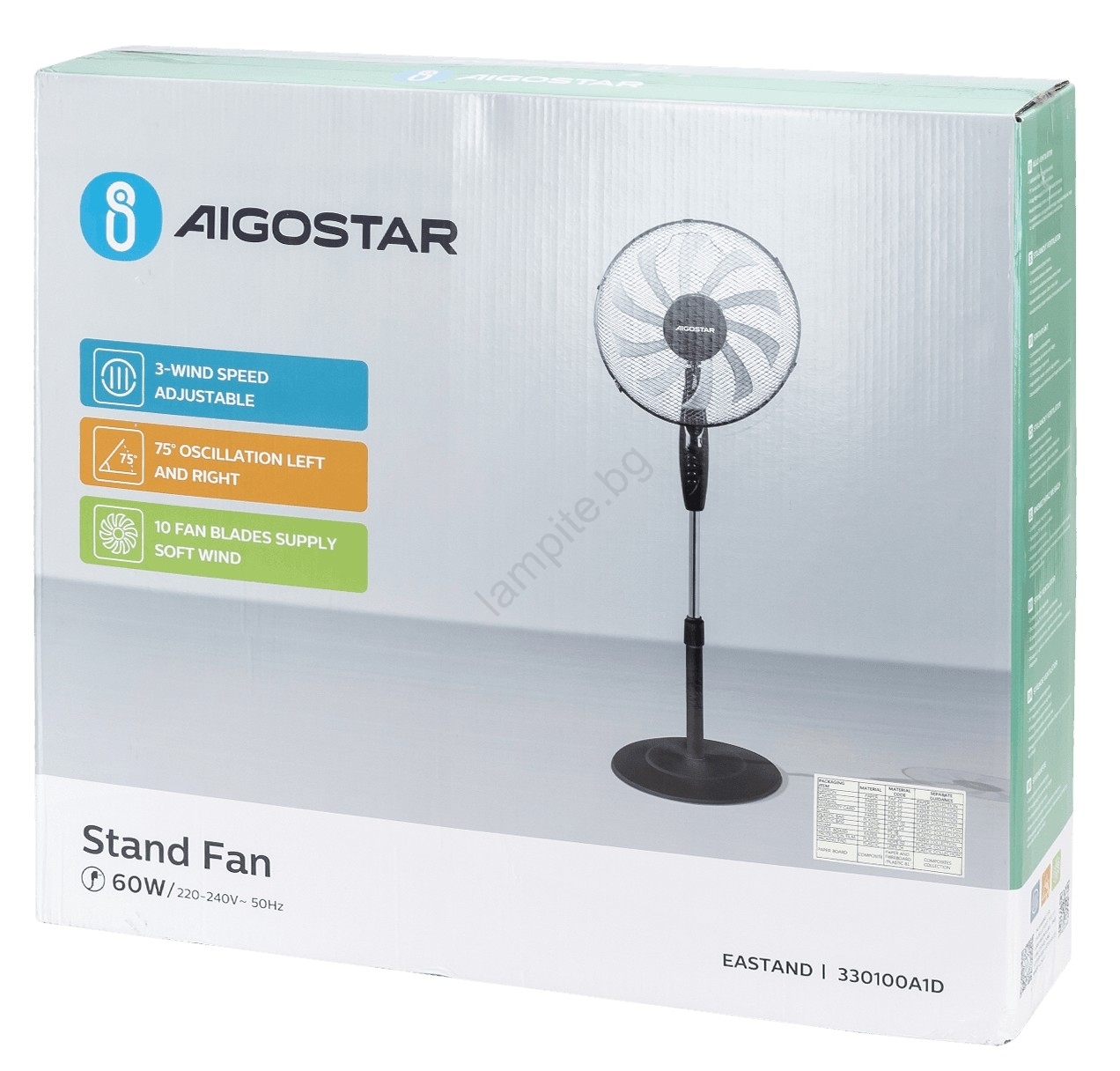 Aigostar - Подов вентилатор 60W/230V черен