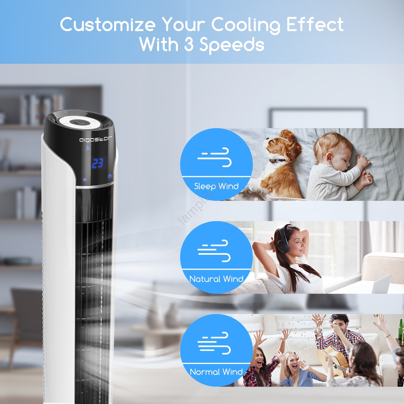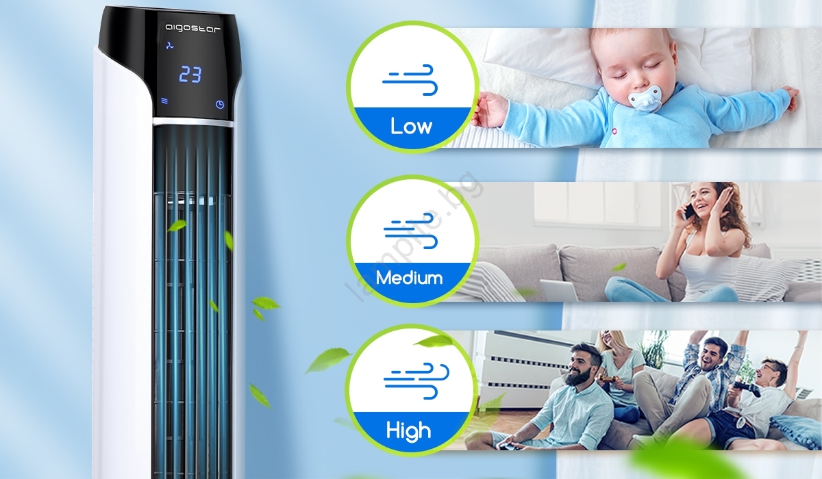• Широкоъгълен въздушен поток 70°, вятърът духа по-далеч и покрива повече пространство.