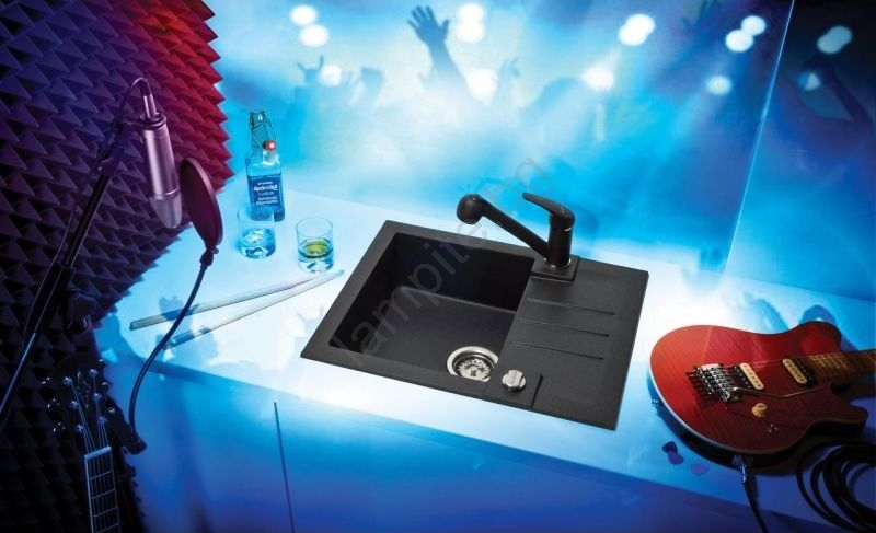 • Съдържание на опаковката: гранитна мивка, крепежни елементи за горен монтаж, решетъчен вентил 3 1/2, сифон с отклонение за съдомиялна, ексцентрично управление на изпускателя.