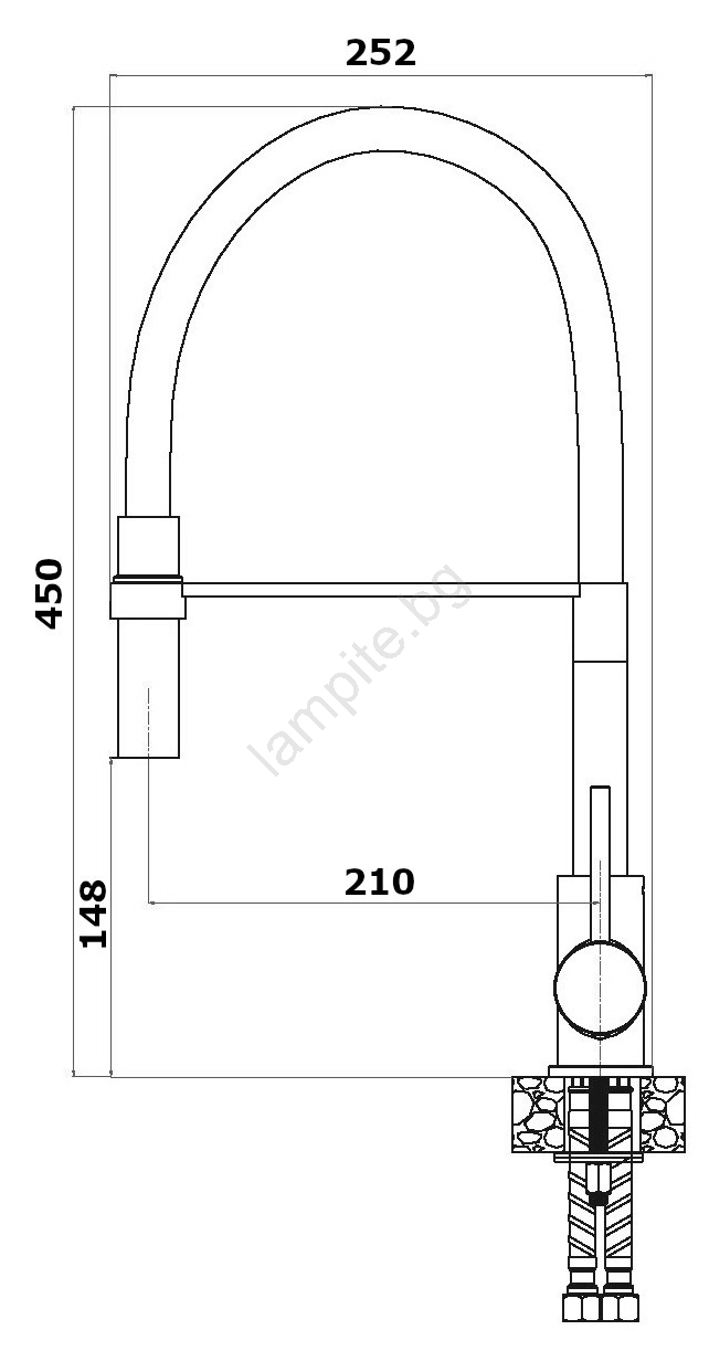 • Едноръкохватков смесител за кухня с високо налягане и въртящо се рамо.