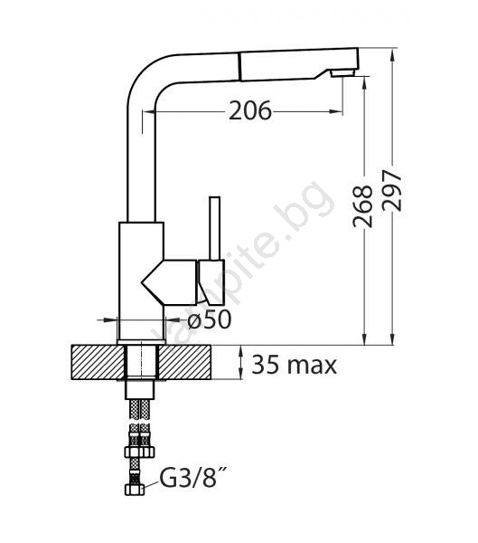 • Комплектът включва: кухненски смесител, свързващи маркучи, монтажен комплект.