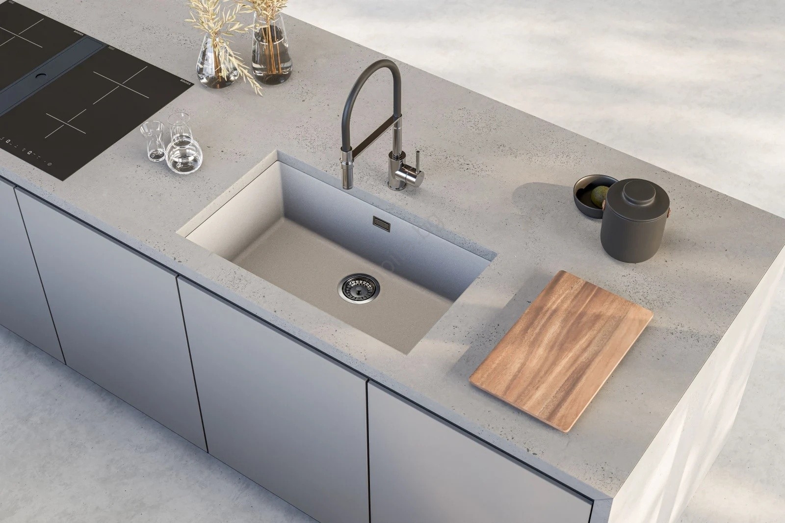 • Съдържание на опаковката: гранитна мивка, монтажни скоби, кошничков вентил 3 1/2, сифон с отклонение за съдомиялна машина.