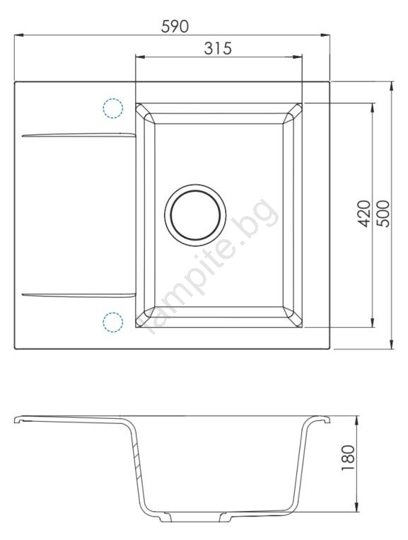 • Съдържание на опаковката: гранитна мивка, решетъчен клапан 3 1/2, сифон с отклонение за съдомиялна, смесител за мивка, свързващи маркучи, монтажен комплект.