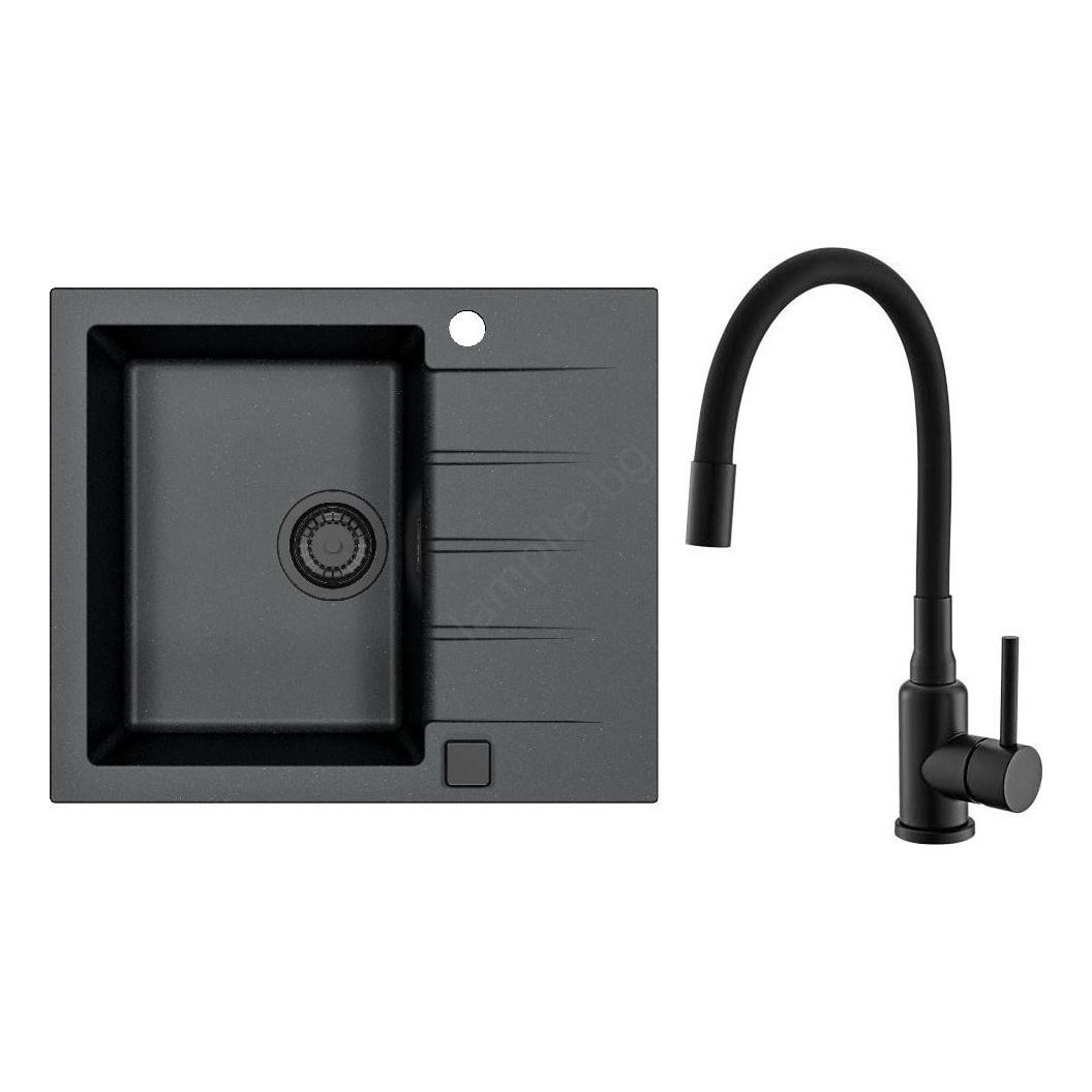 • ALVEUS SETA23236 - Кухненска мивка ROCK 59,5x47,5 cm + смесител за мивка с гъвкаво рамо MINTAS 34 cm гранит/матово черно