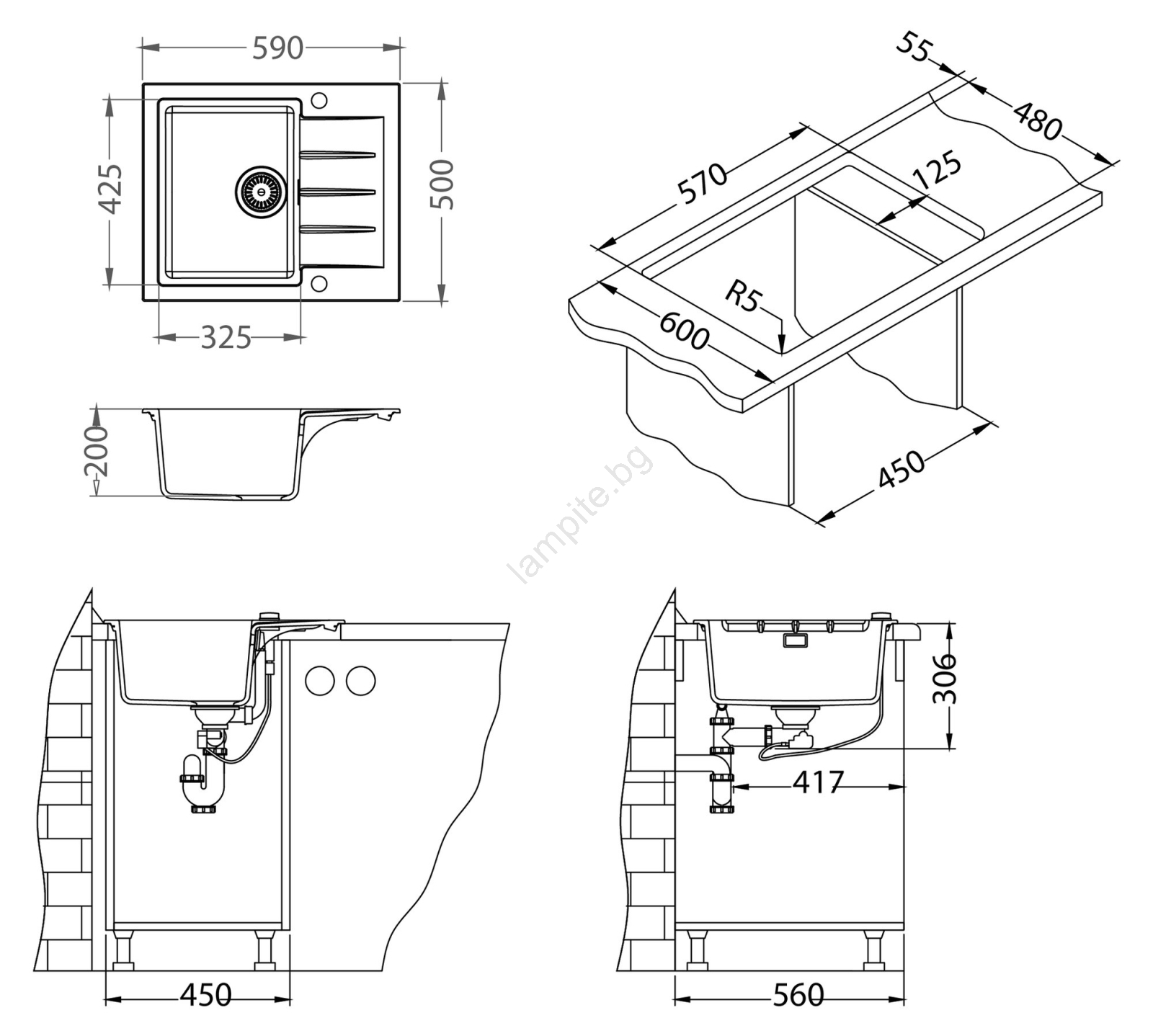 • ALVEUS SETA23197 - Кухненска мивка CADIT 59x50 см + смесител за мивка с гъвкаво рамо MINTAS 34 см гранит/матово черно
