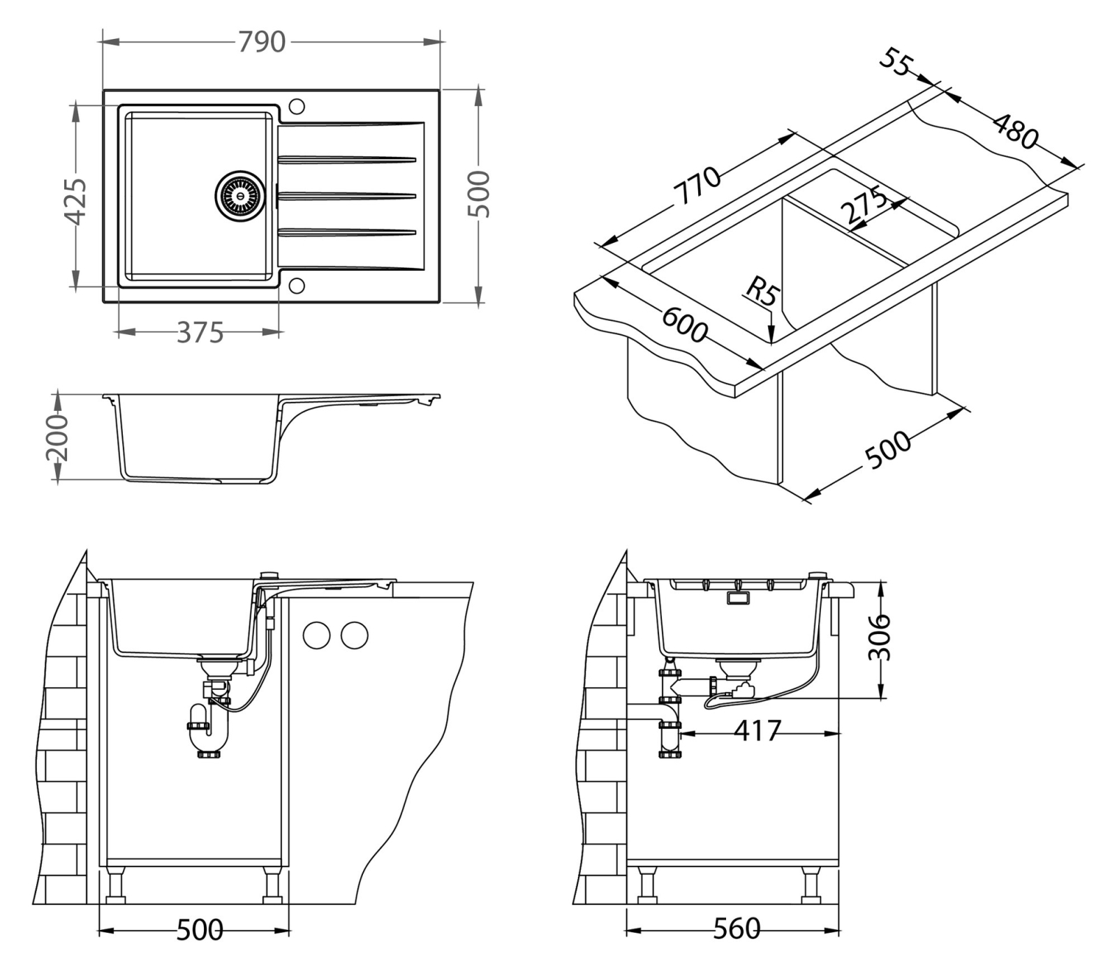 • ALVEUS SETA23231 - Кухненска мивка CADIT 79x50 cm + смесител за мивка MINTAS 34 cm с гъвкав чучур, гранит/матово черно