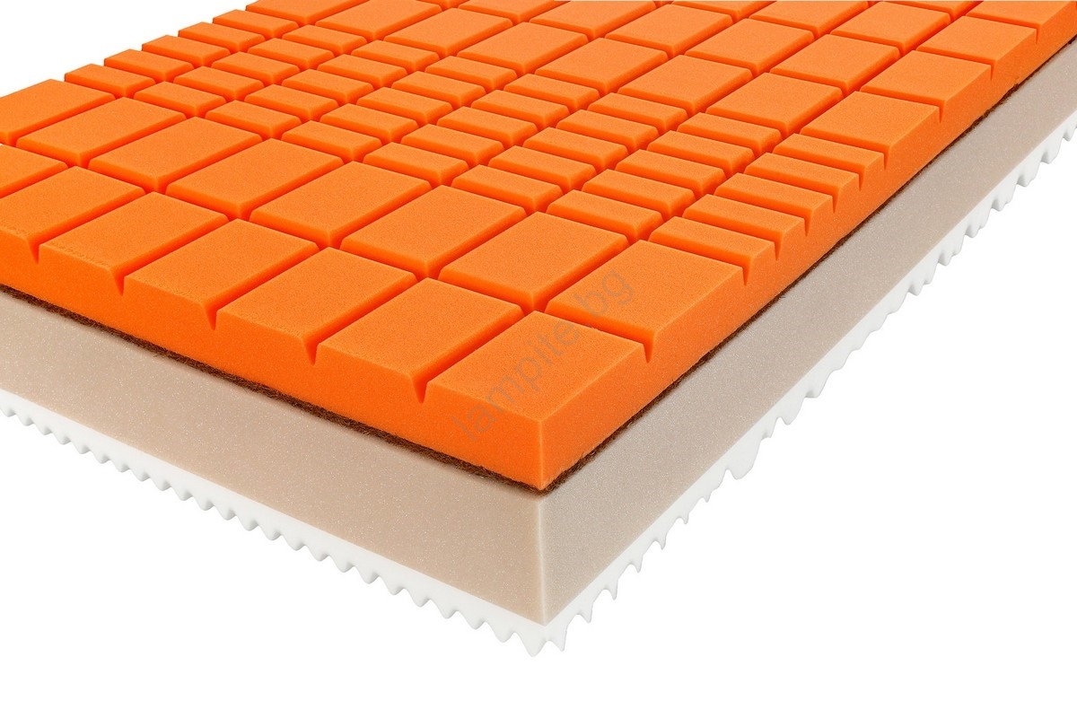 • Е изработен от комбинация от пяни Flexifoam®, които осигуряват ортопедични свойства, еластичност, проветривост и издръжливост.