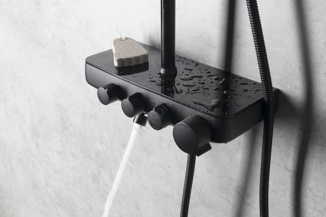 • Опаковката включва стенен смесител, главен и ръчен душ, душ колона и маркуч.
