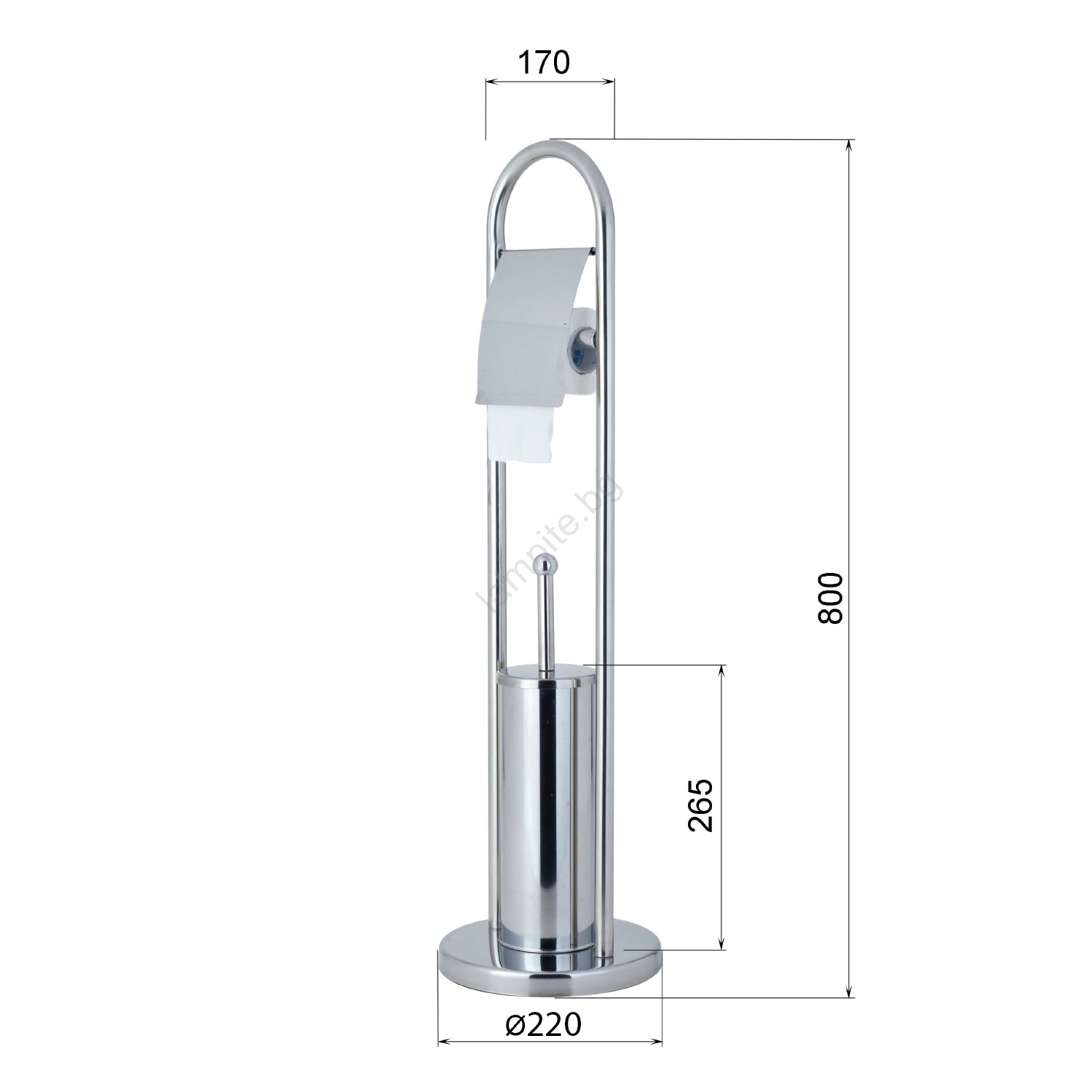 • Стойката е оборудвана с основа, тоалетна четка и държач за тоалетна хартия.