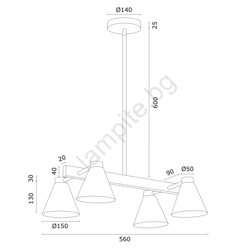 • Argon 1774 - Полилей AVALONE 4xE27/15W/230V черен/златист