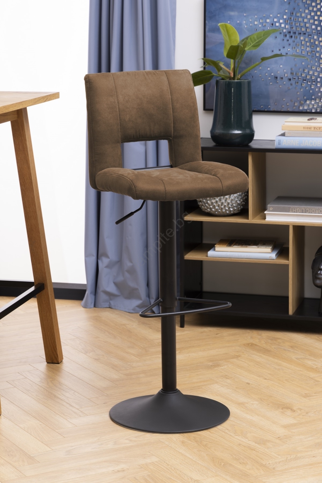 • Класическа силуета, тапицирано седалка, удобна облегалка и здрава основа - бар столът има всичко.