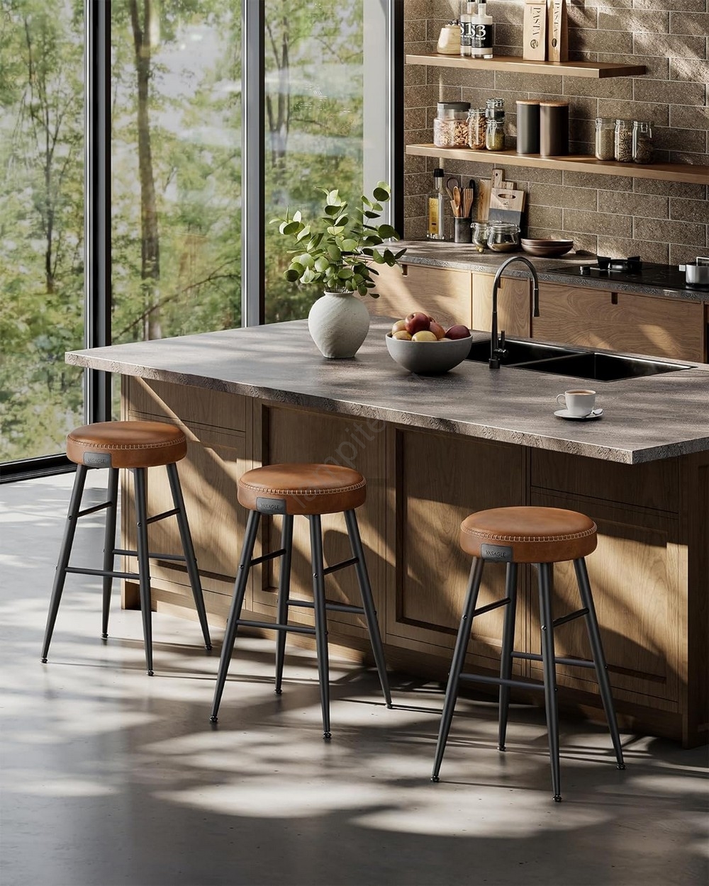 • Открийте очарователната комбинация от еко кожа, изискано прошиване и елегантни стесняващи се крака в тези барови столове.