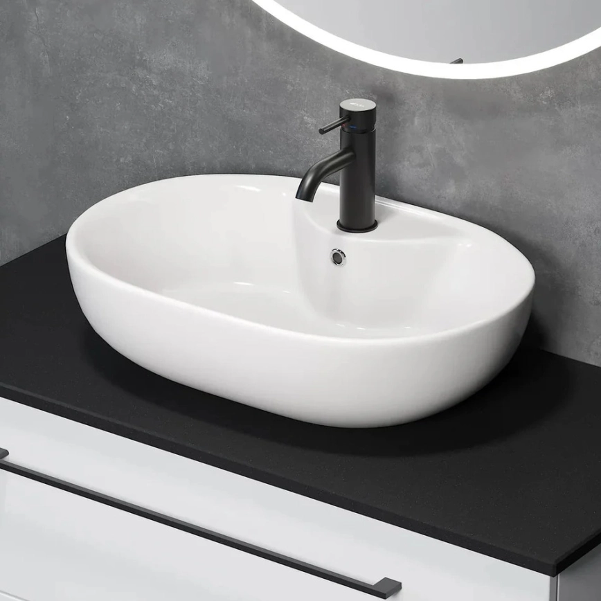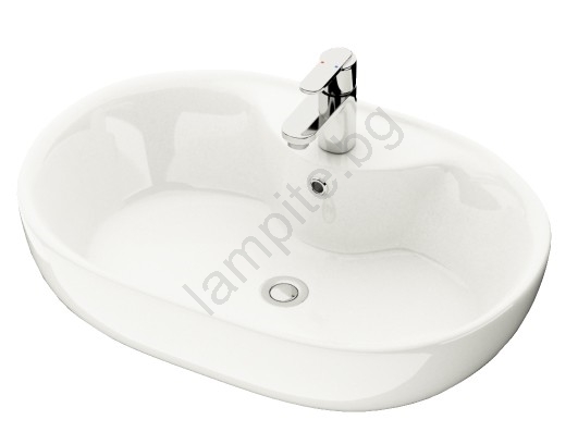 • Мивката е предназначена за монтаж върху плот, което позволява гъвкаво позициониране и съчетаване с различни видове плотове за баня.