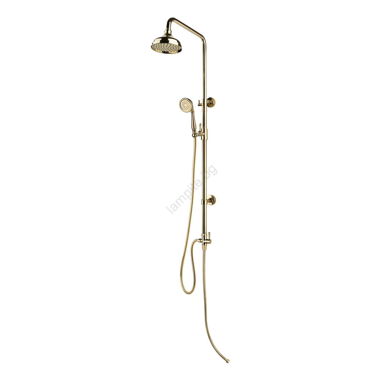 • Душова колона и горен душ от неръждаема стомана с PVD покритие.