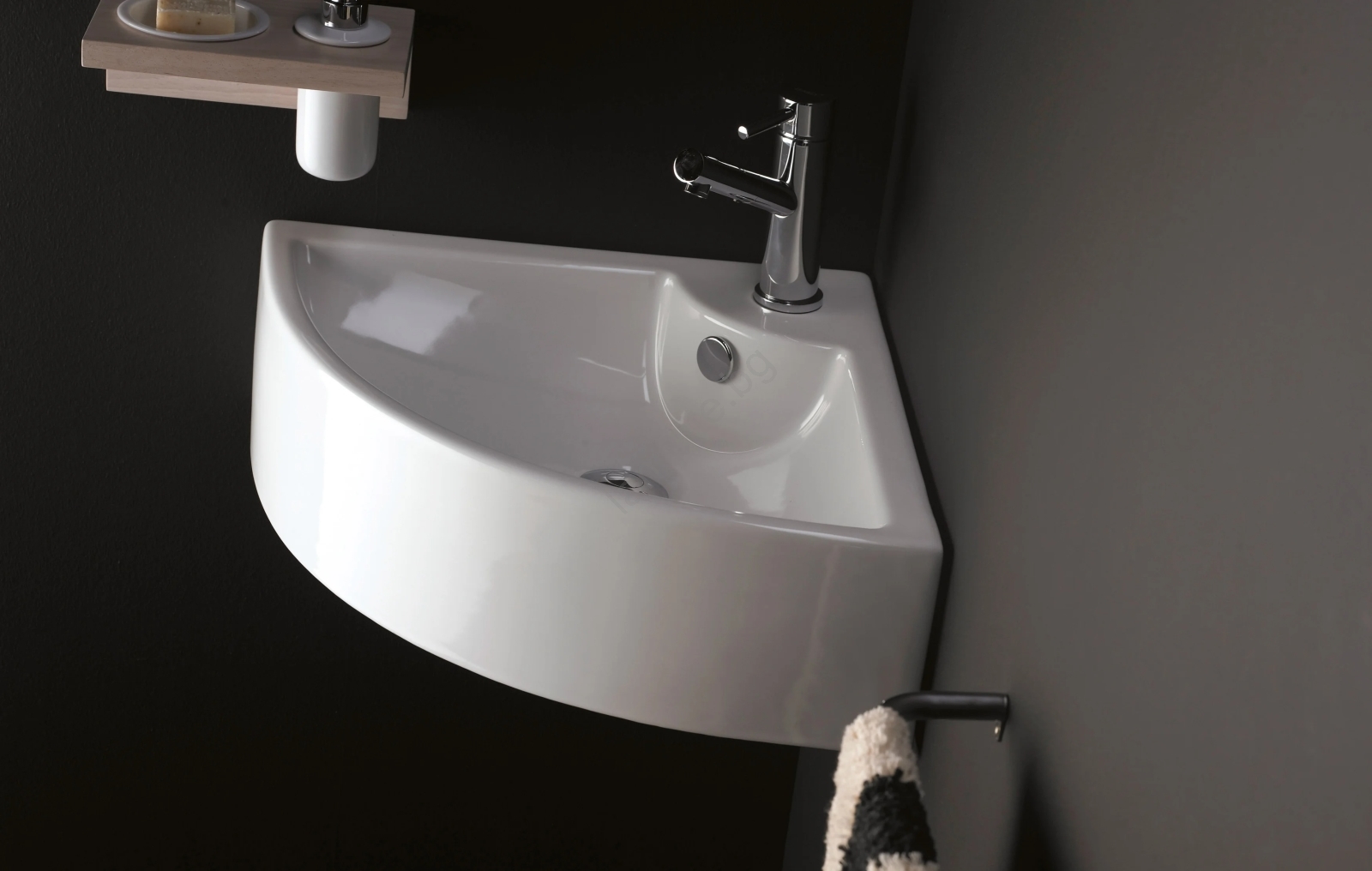 Bathco 0043 - Ъглова стенна мивка OPORTO 64,5 x 47 см порцелан/бяла