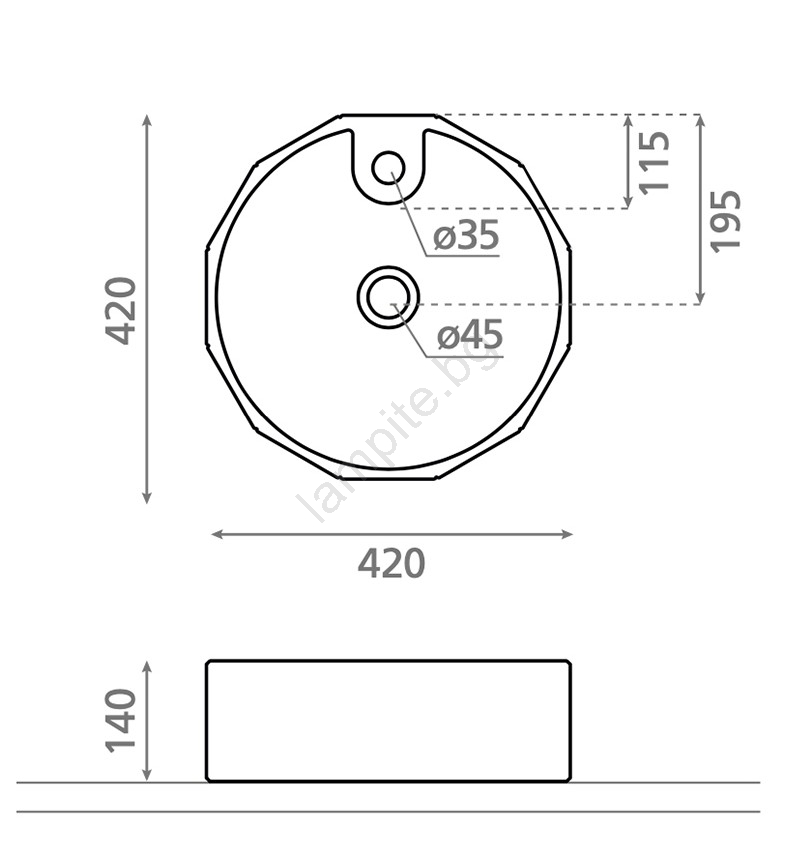 Bathco 4158 - Мивка за плот CIRCUS Ø 42 см порцелан/бяла