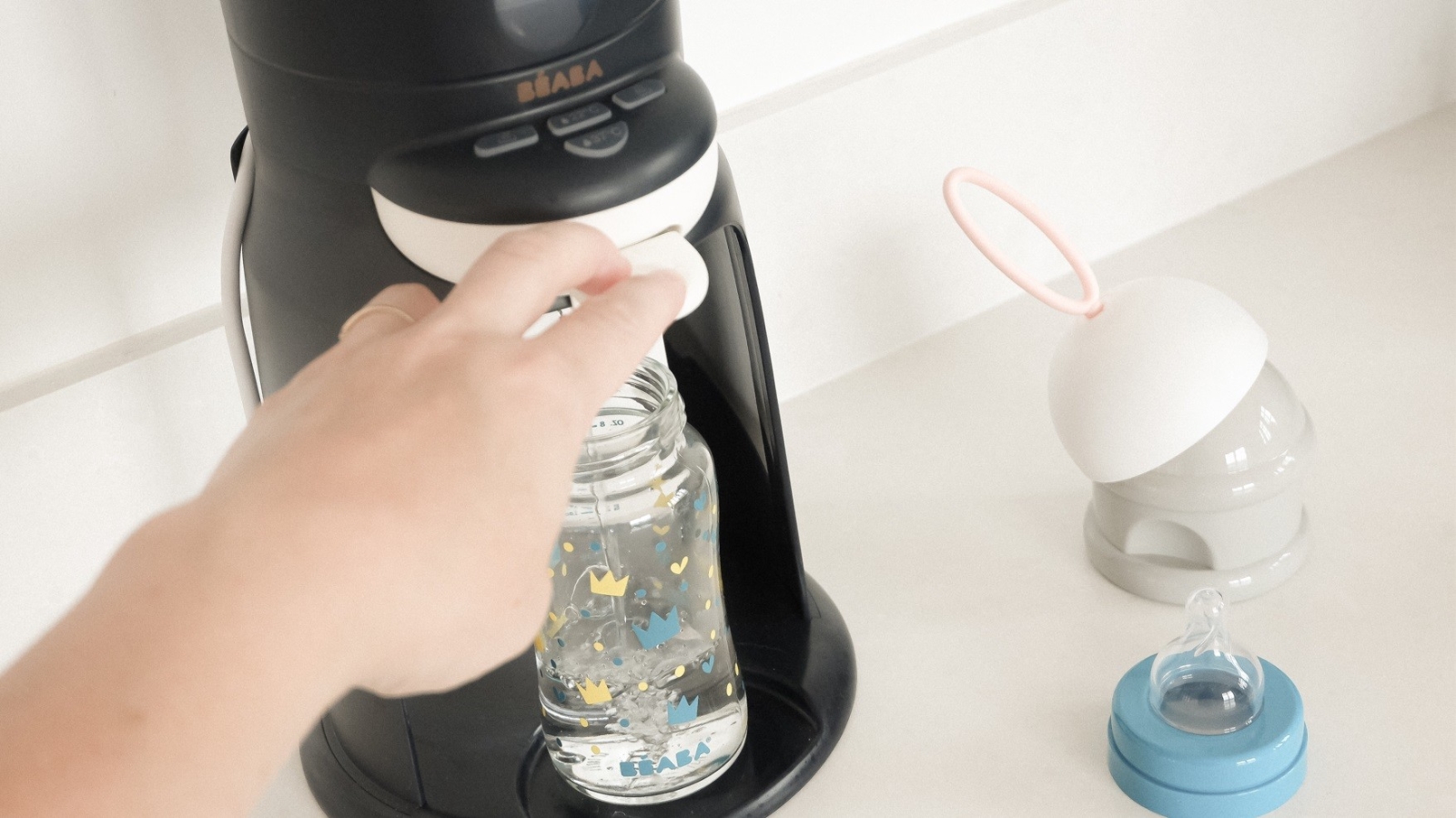 • Шишето с мляко се приготвя лесно с една ръка, така че можете да гушкате бебето по време на приготвянето.