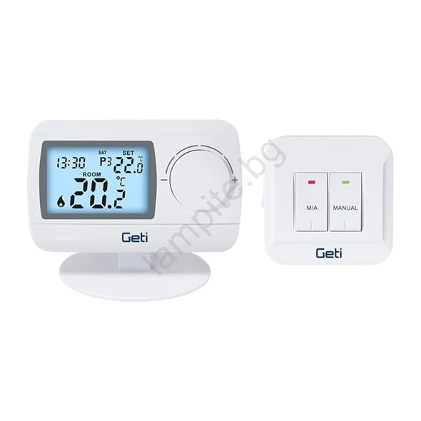 • Теростатът се захранва от две батерии AA (включени в комплекта), а приемната единица се захранва от мрежата 230 V AC.