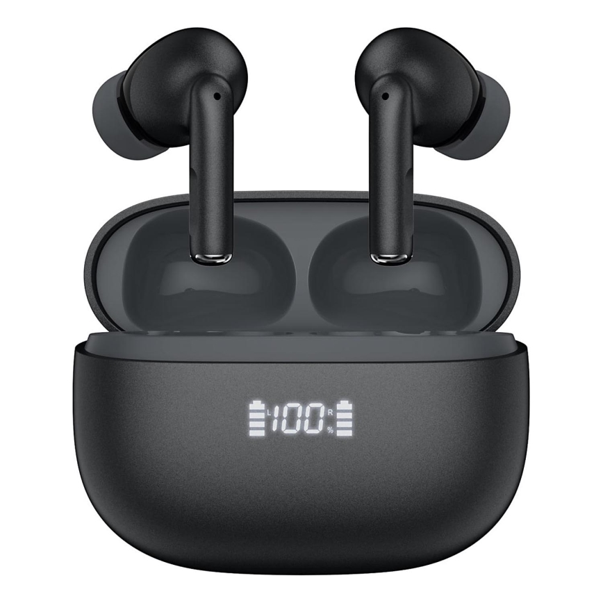 Безжични слушалки с ANC+ENC, 300 mAh + 2x 40 mAh, черни