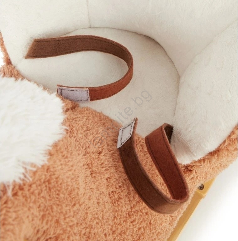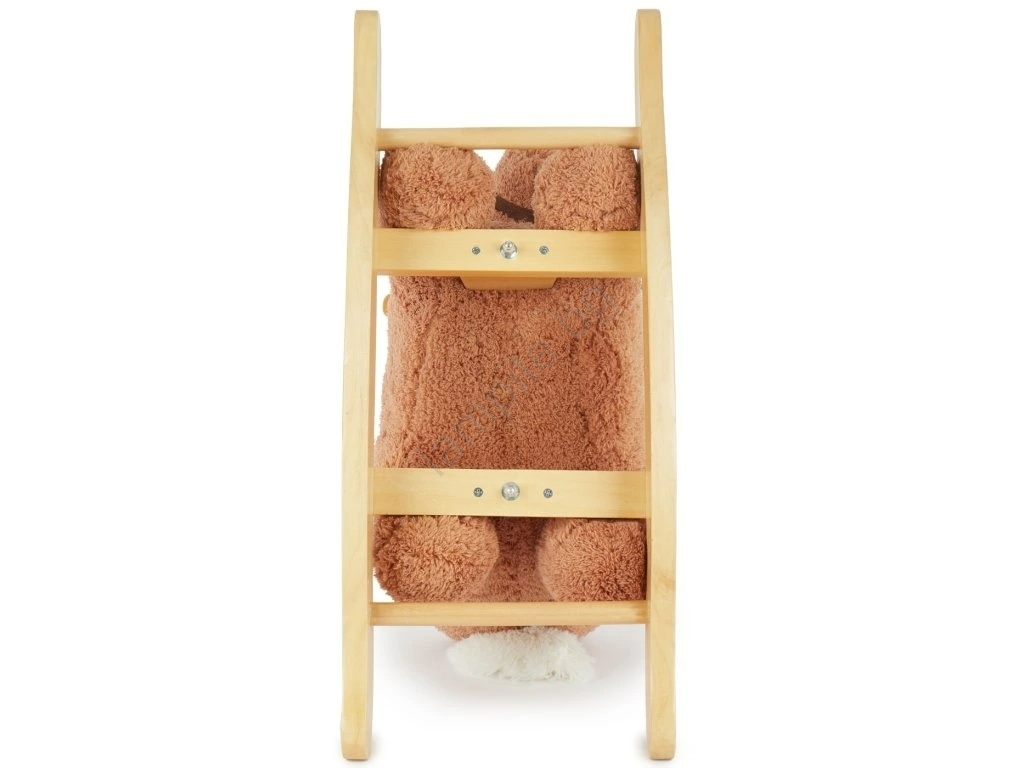 • Благодарение на меката плюшена материя и здравата дървена рамка, тя подпомага моторните умения и осигурява много безопасно забавление при люлеене.