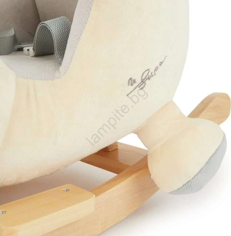 • Благодарение на меката плюшена материя и здравата дървена рамка, тя подпомага моторните умения и осигурява много безопасно забавление при люлеене.