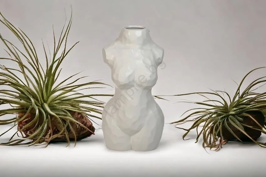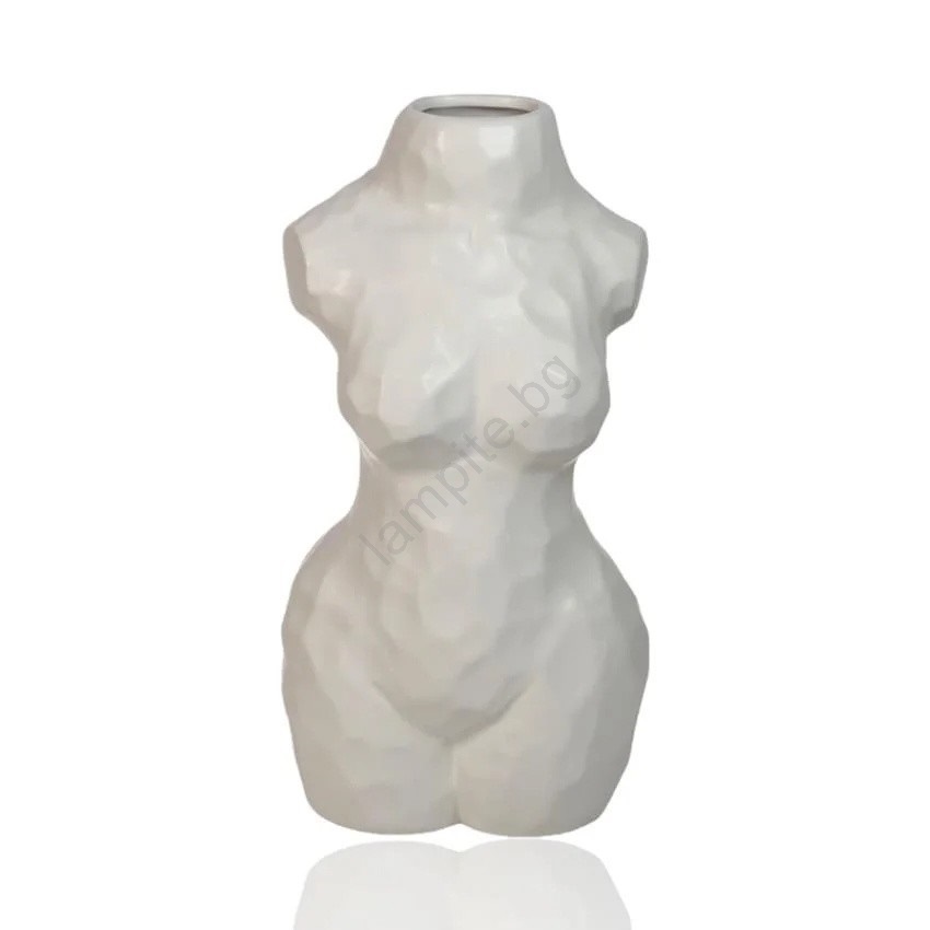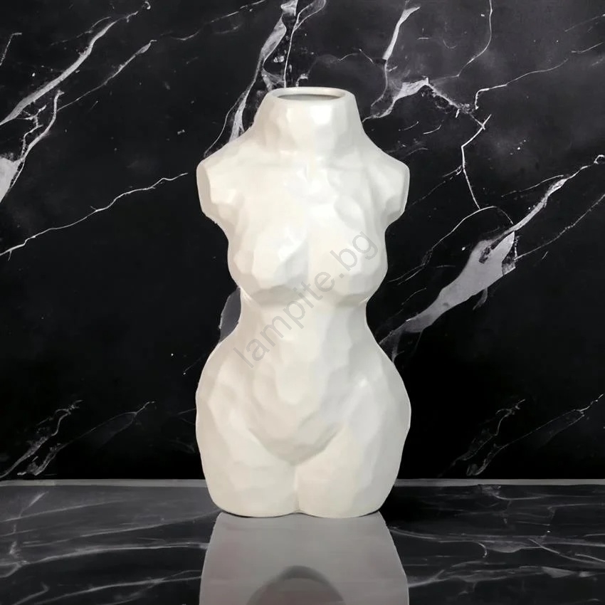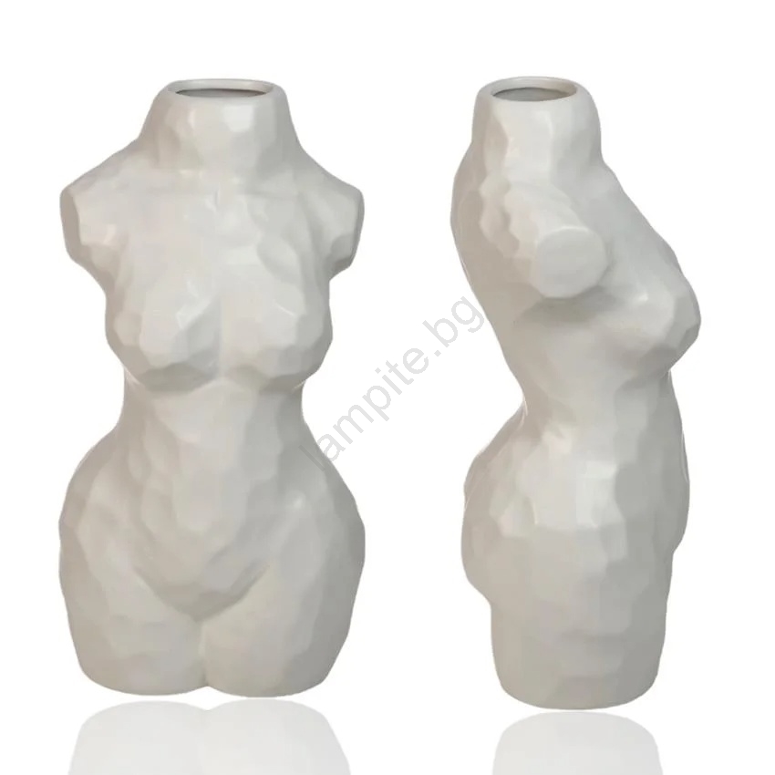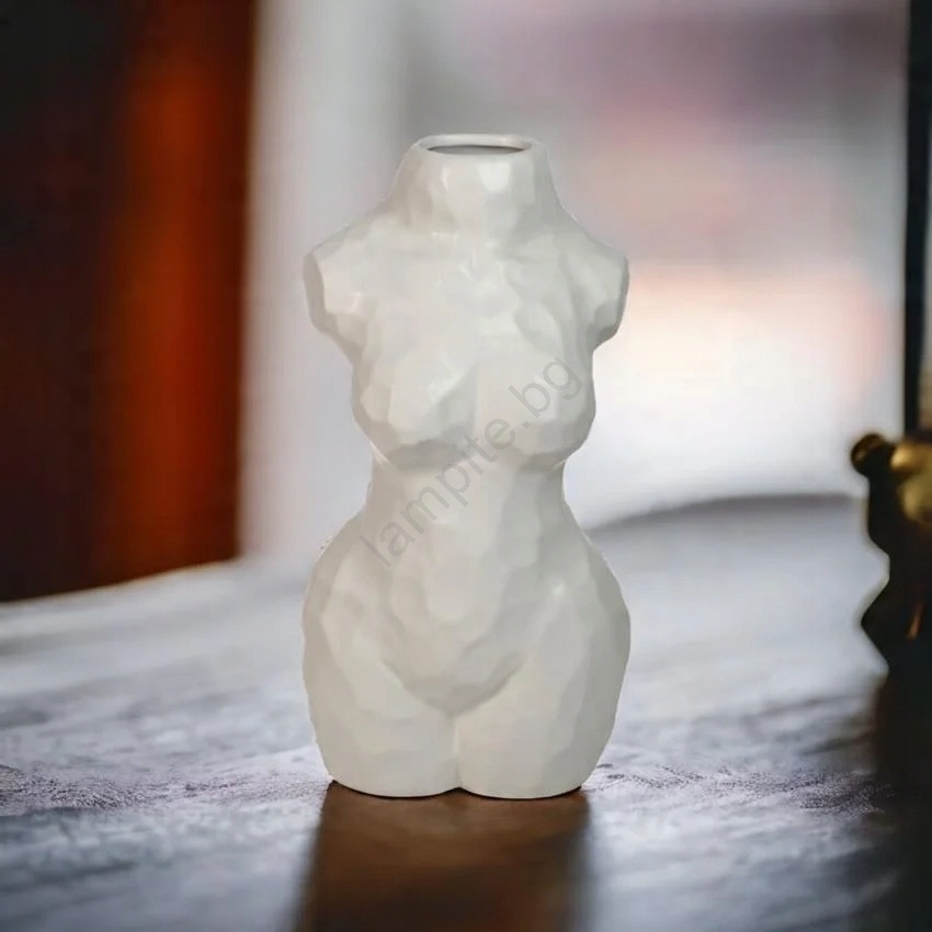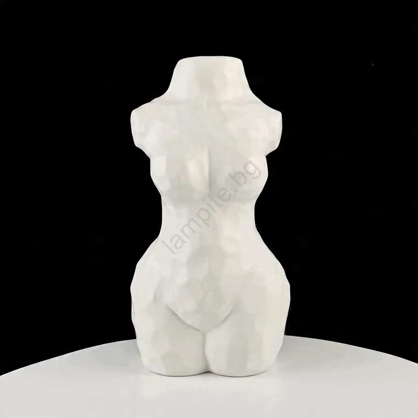 • Декоративна ваза за цветя с форма на женска фигура в бял цвят.