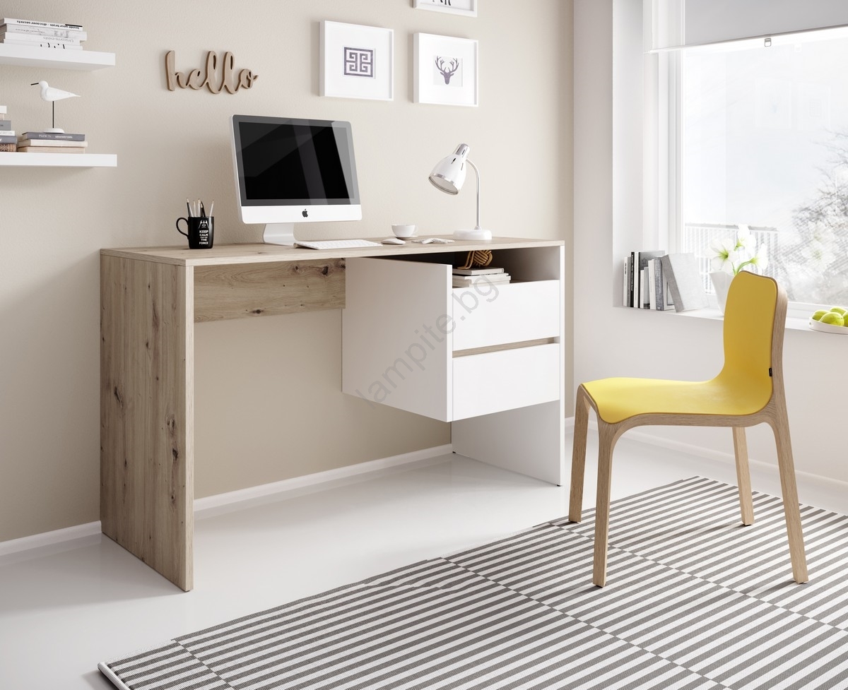 • Бюро с чекмеджета MARLO, дъб артизан/бяло