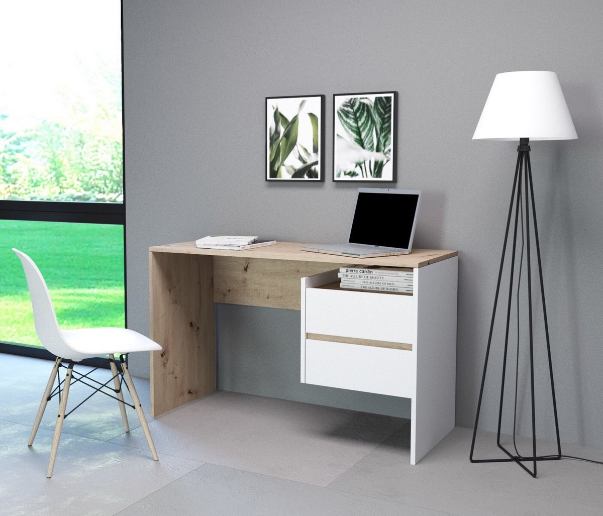 Бюро с чекмеджета MARLO, дъб артизан/бяло