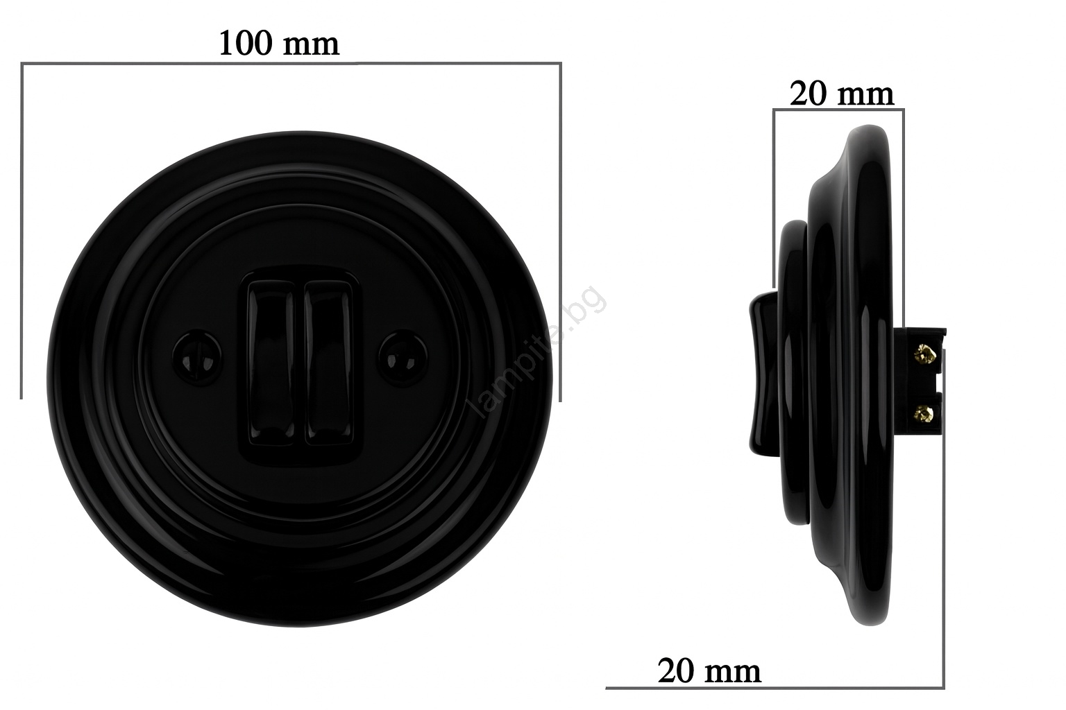 Bohemia-Design - Порцеланов ретро двоен ключ с рамка № 6+6, черен