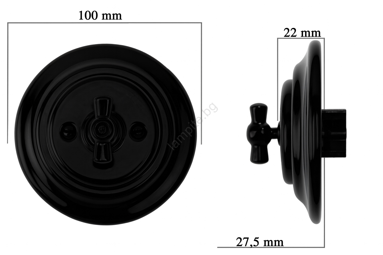 Bohemia-Design - Порцеланов ретро въртящ се димер с рамка 250V/10A черен