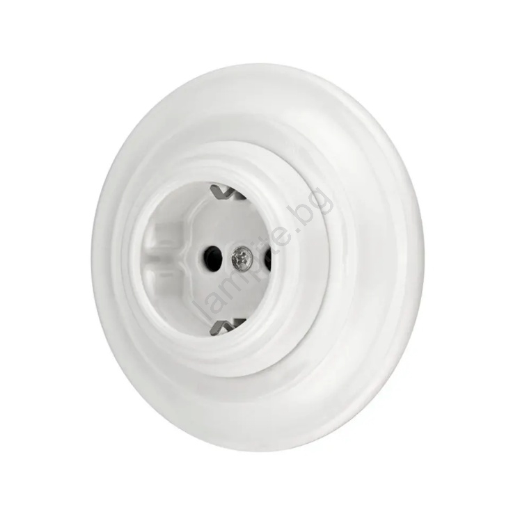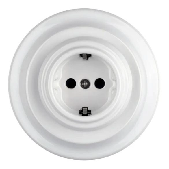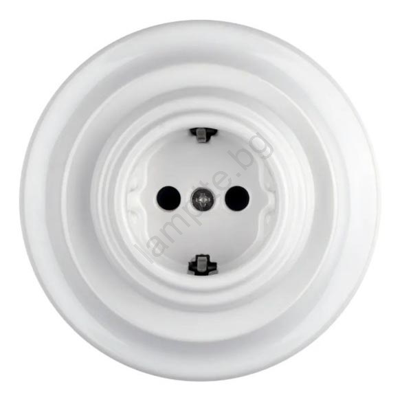 Bohemia-Design - Порцеланова ретро домашна розетка SCHUKO с рамка, 250V/16A, бяла