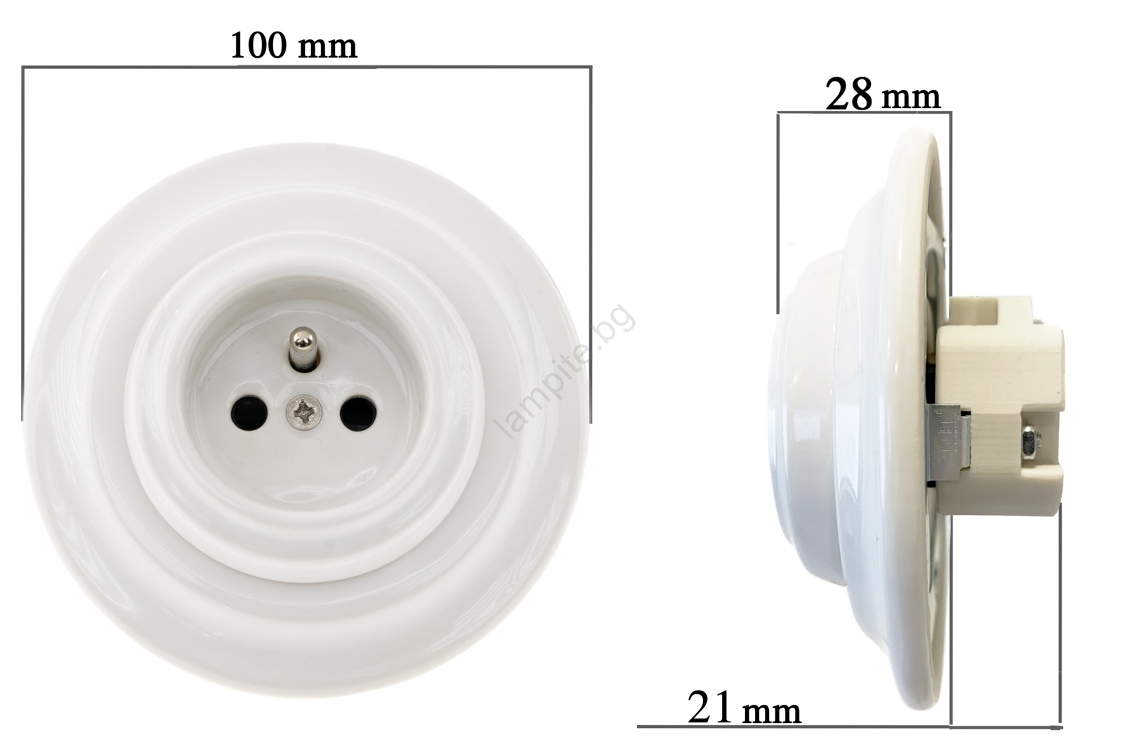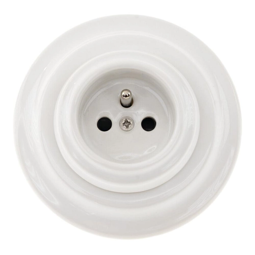 Bohemia-Design - Порцеланова ретро битова розетка с рамка 250V/16A, бяла